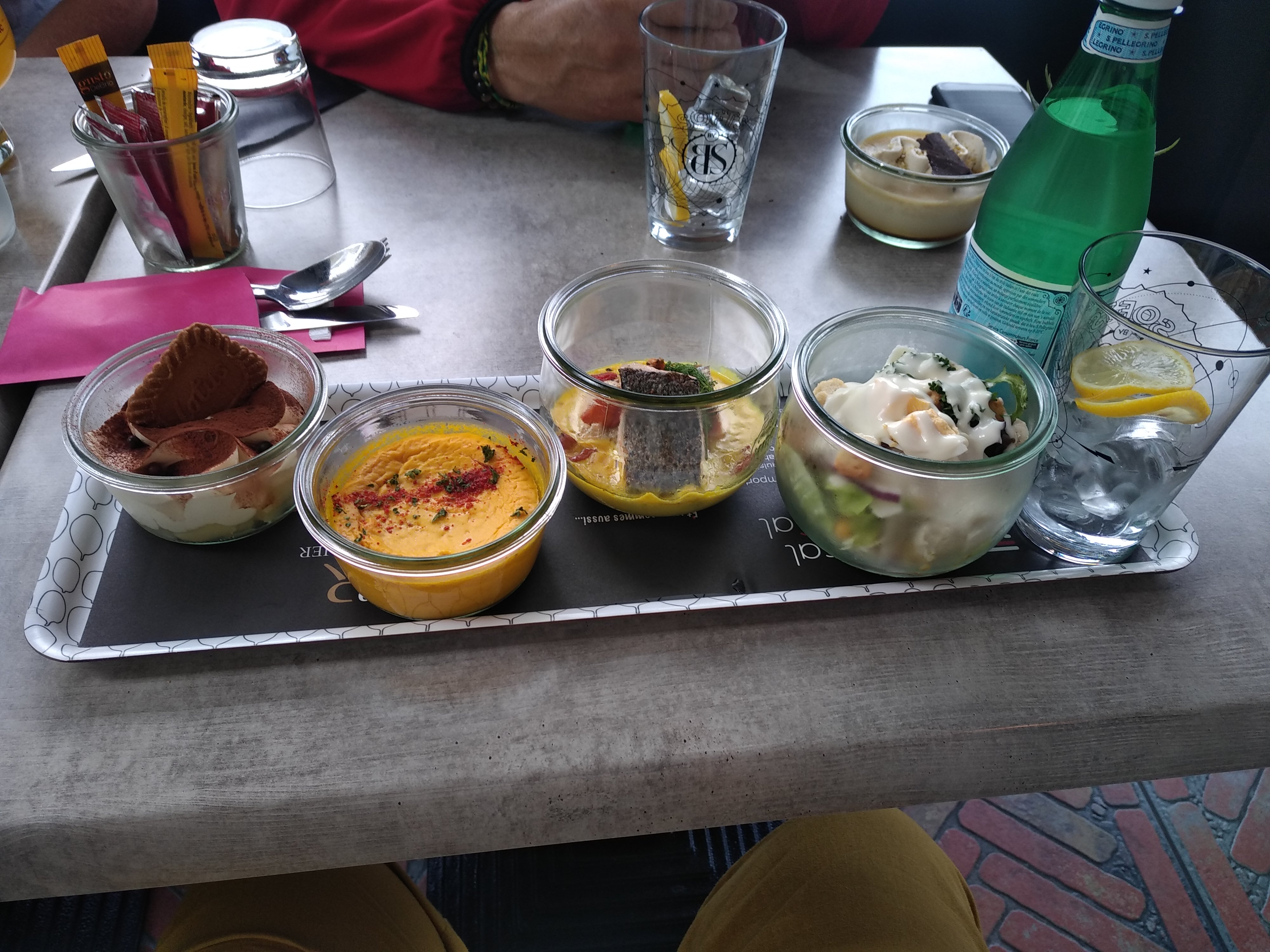 Concept très sympa ! Tout est dans le bocal de l'entrée au dessert. C'est frais, varié et goûteux. De plus le personnel et chaleureux. Je recommande.