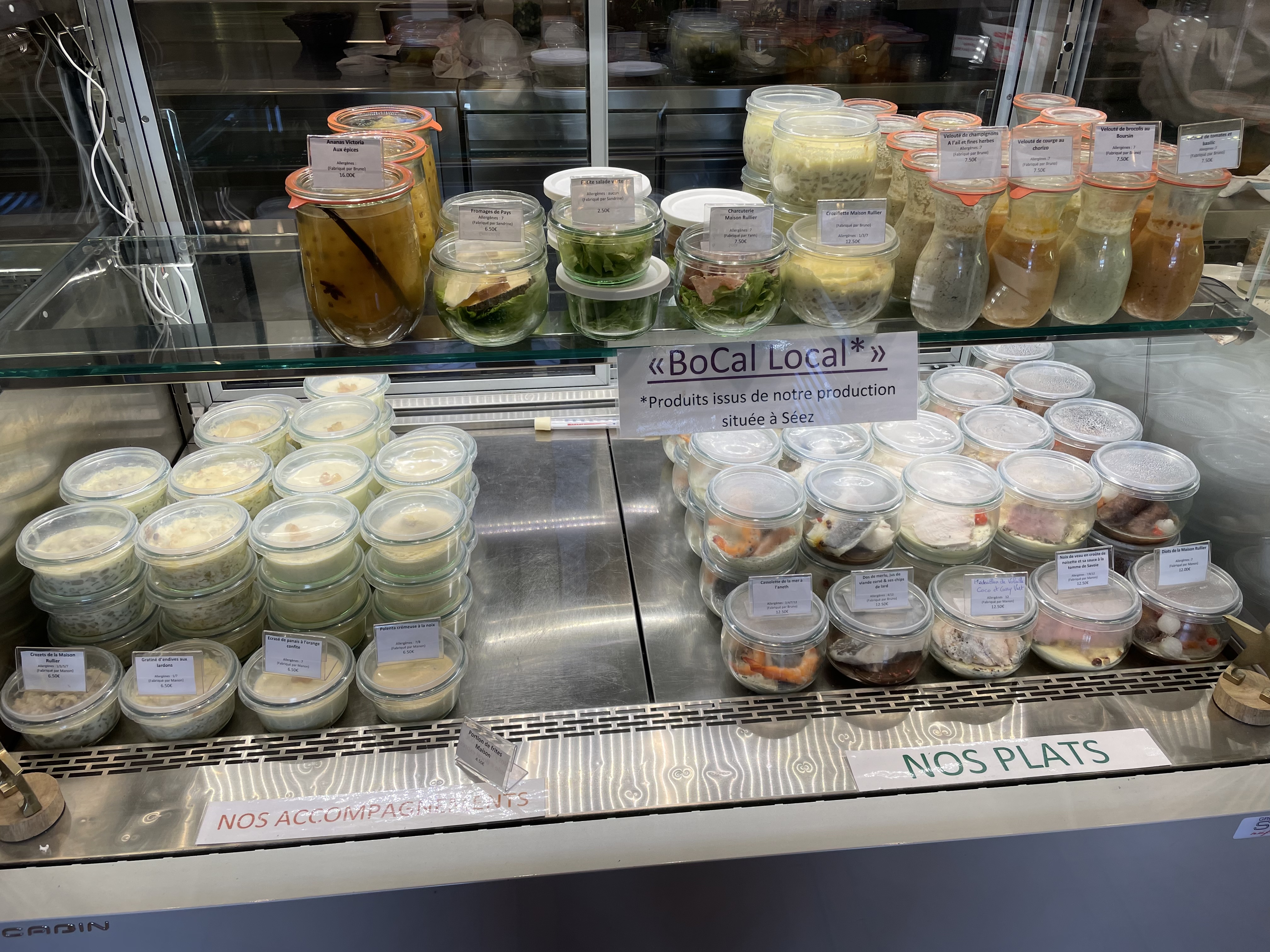 Les bocaux sont assez bons. Quand on rentre, on peut voir en vitrine tout ce qu'il y a sur la carte. Les desserts font envie mais... on ne peut pas prendre le dessert de son choix car pour le prendre, il faut prendre tout le menu qui ne nous convient pas ! Mais non... on ne dissocie pas et en plus on est assez désagréable avec la clientèle. On rajoute quelques remarques désobligeantes. Le pire, c'est de voir en sortant tous les desserts en vitrine qui n'ont pas été vendus... mais il ne faut pas dissocier.