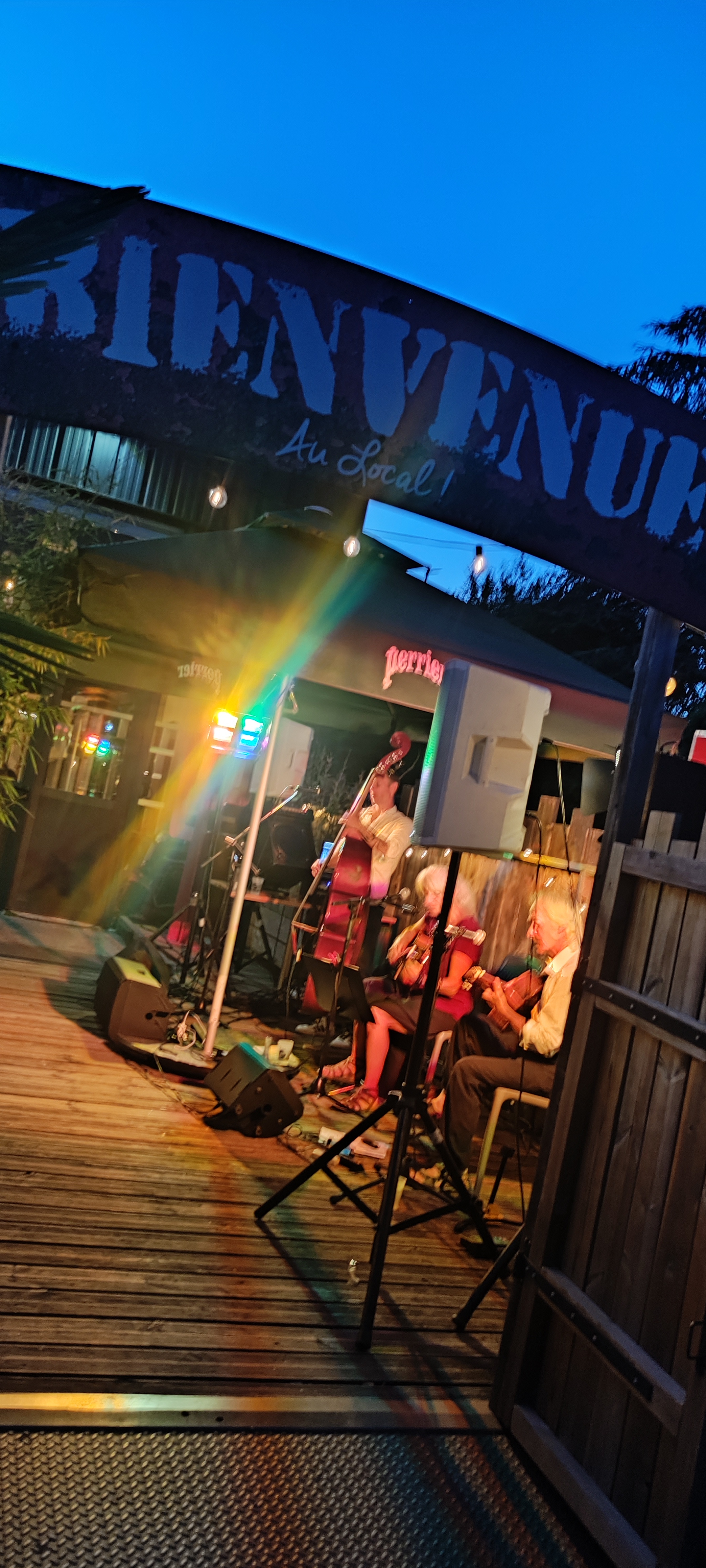 Accueil chaleureux, très bonne ambiance.. Nous avons écouté un concert de rock et blues, avec de très bons musiciens sans oublier le chanteur... Vraiment un bon moment. Et je le répète nous étions très à l'aise car le personnel est vraiment super.