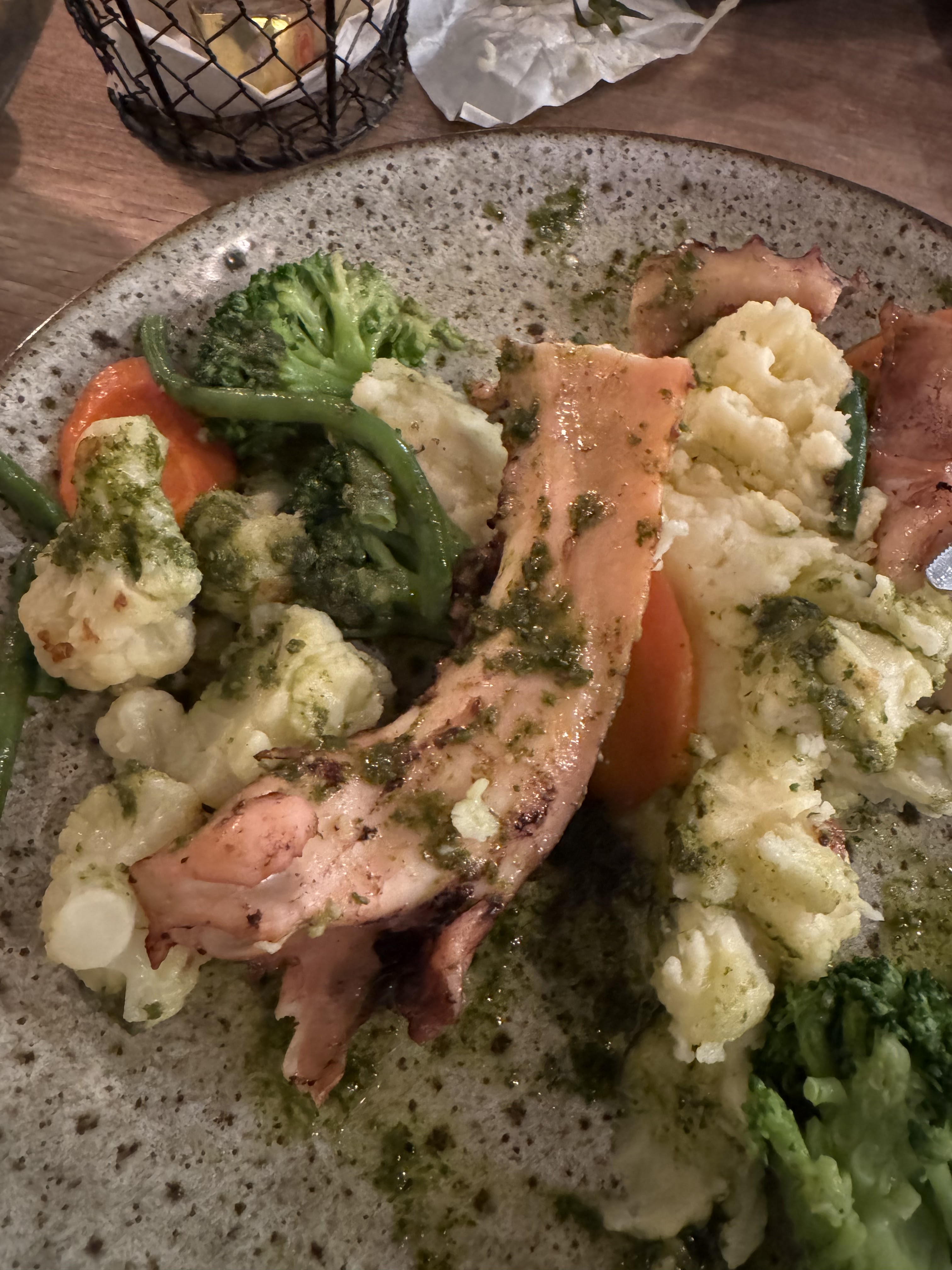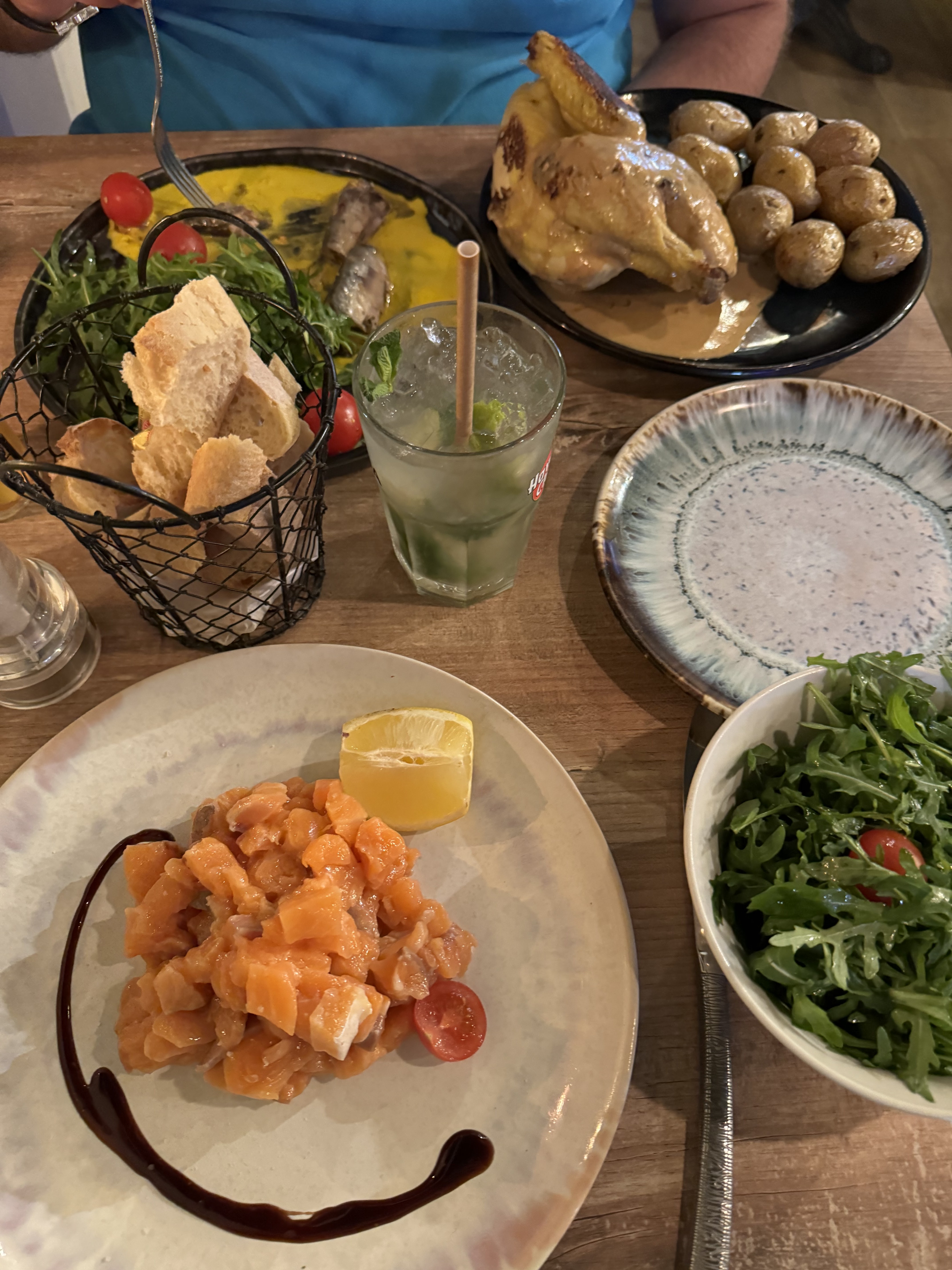 Il y avait du saumon avec des gnocchis. C'était savoureux. Mais les mojitos. Oh mon Dieu, tout va bien. Mes orteils me picotent. J'ai enfreint la règle de ne pas m'enivrer seul à l'étranger. Il me fallait en avoir un autre. C'était aussi la moitié du prix des boissons sur la plage. Il faudra peut-être revenir...