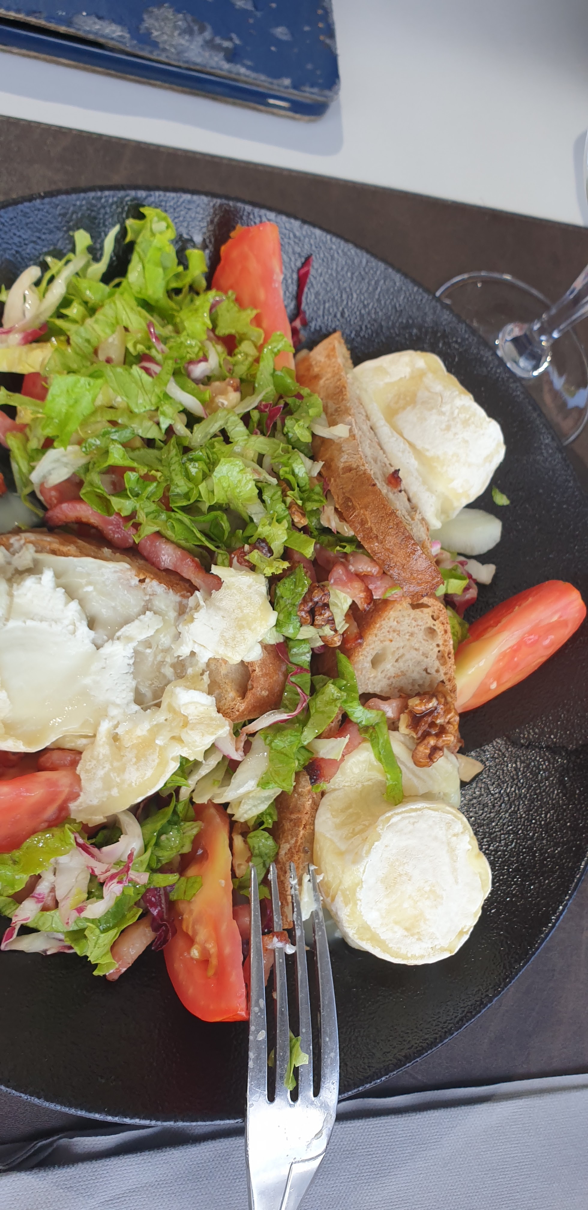Ce n’est pas la même mentalité que dans la vieille ville, nous sommes sur le port, mais cela n’excuse pas tout. Le serveur semblait agacé de devoir nous répondre lorsqu’on lui posait une question, il nous répondait parfois même les yeux fermés. J’ai trouvé cela irrespectueux. Il semblait non-chalant. Plat du jour + dessert à 17€. Les portions sont moins généreuses que dans les resto de la partie haute, mais le poisson était bon et la salade de chèvre aussi. Le pain dans la corbeille était durci. Nous avons eu une proposition de dessert car celui du menu n’était plus disponible. La salade de fruits était bonne. Toutefois la musique était plutôt adaptée à un bar qu’à un resto. Nous ne recommanderons pas ce resto. L’ambiance est importante, autant que la qualité des menus.