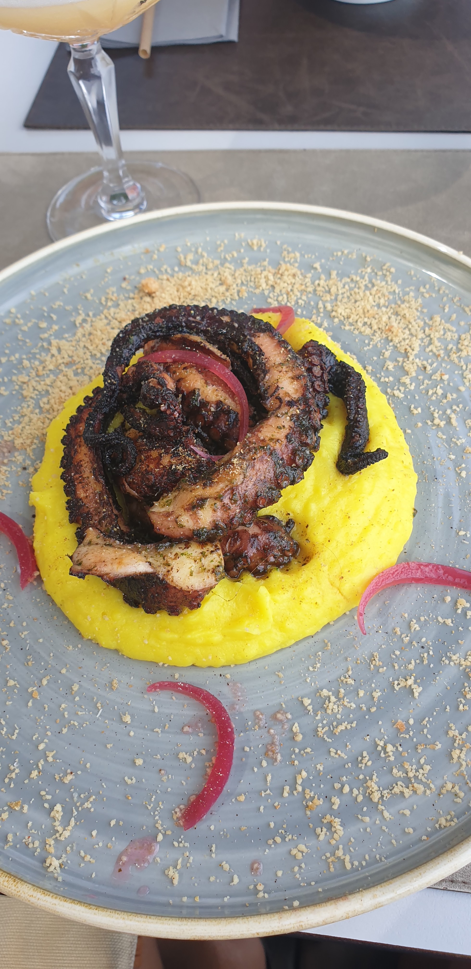 Déco, service et cuisine au top. J'ai pris un poulpe grillé servi avec sa purée maison à tomber! Tout simplement exquis! Bravo au cuisto ! Je me suis donc régalée et je recommande donc ce resto si comme moi vous aimez le poulpe 😉 Un seul bémol : le même que celui de Vanessa Flesch plus bas dans les avis... Nous étions aux premières loges d'un savon virulent passé à l'un des personnels, c'était déplacé à mon goût, les clients n'ont pas à assister à cela 😔