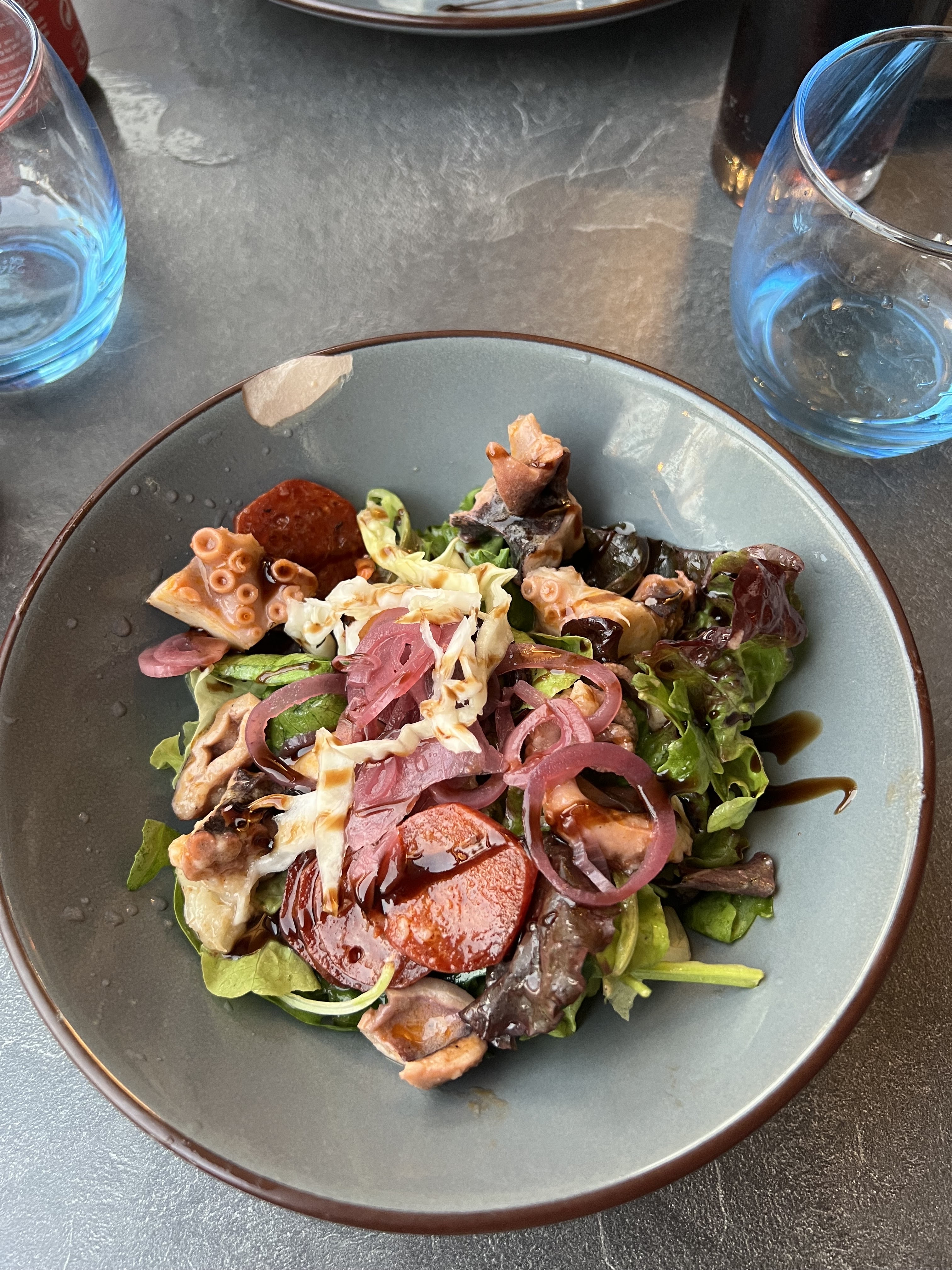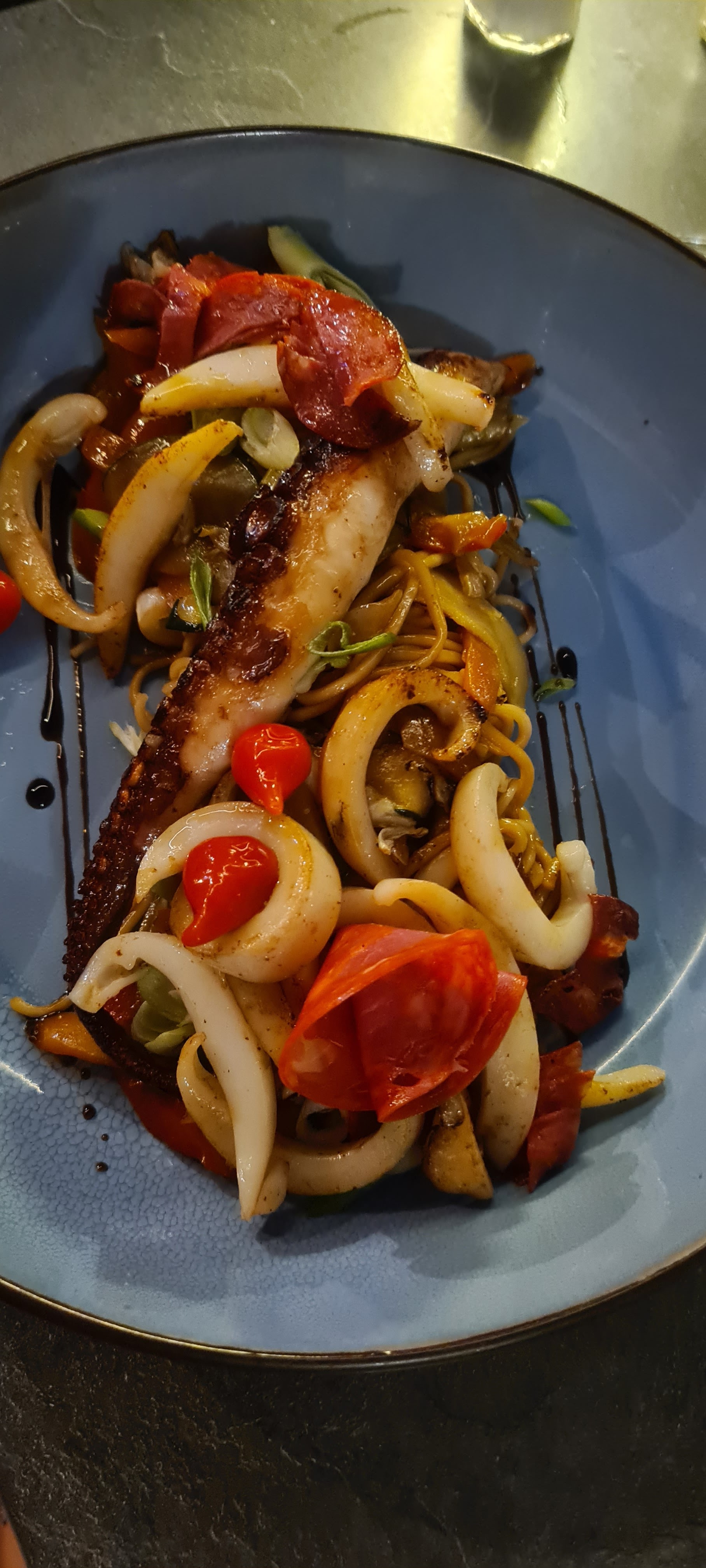 Une soirée parfaite. Légèrement en retrait du port au pied de la grande roue doté d’un espace accueillant d’une équipe souriante. Une cuisine exceptionnelle avec des produits frais fait maison. (Tapas, poulpe, sèche, filet de loup etc..) Que demander de plus!