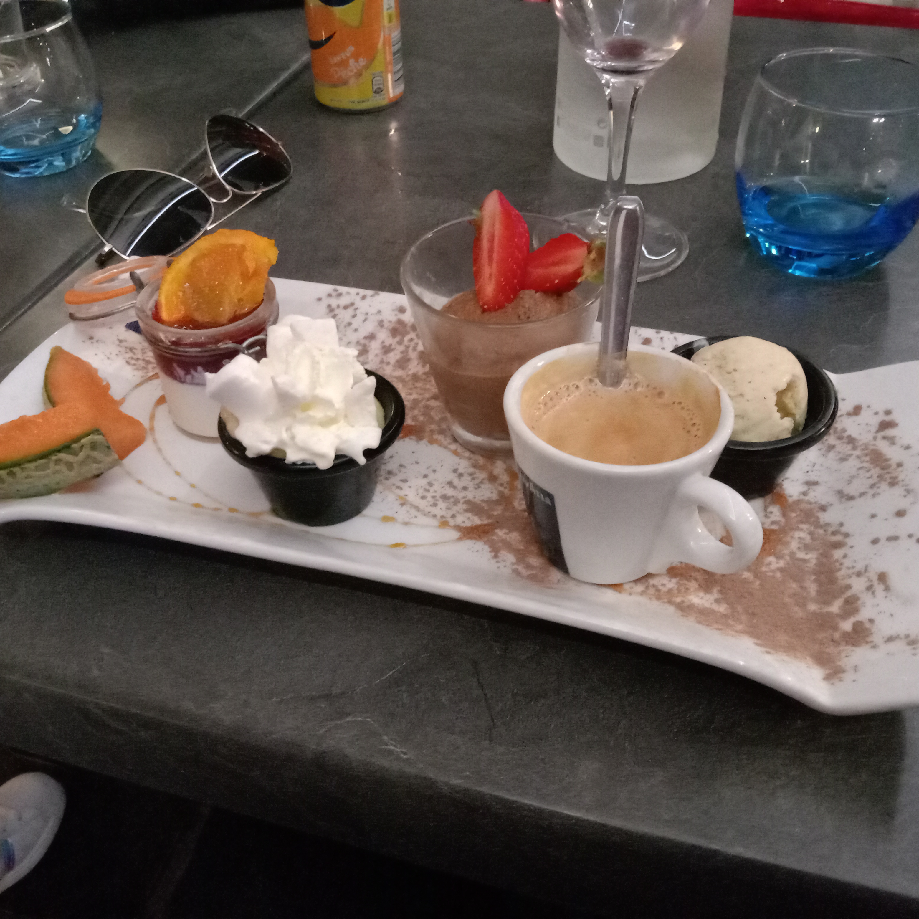 Tout était parfait ! Le cocktail super bien présenté et bien dosé. Les plats étaient vraiment travaillés avec des saveurs intéressantes. Et le dessert crème brûlée pistache et glace chocolat à tomber !! La serveuse était au top. Très efficace et serviable. On a passé un super moment, on reviendra !