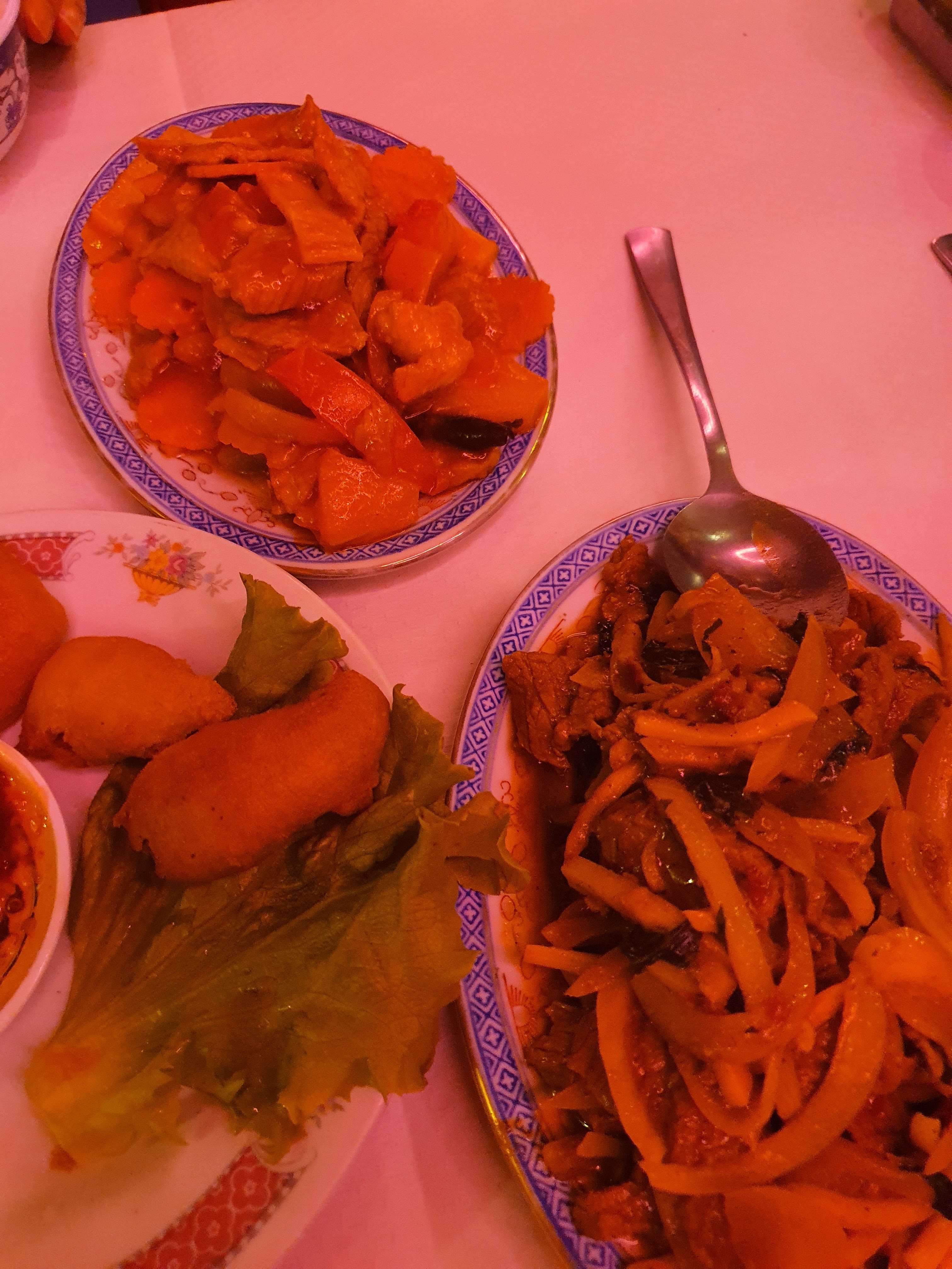 L'endroit dit restaurant chinois mais en tant qu'asiatique, je trouve que cet endroit est asiatique en général, pas nécessairement chinois. Ils ont un menu en anglais mais le serveur ne parle pas anglais. L'éclairage rose est vraiment ennuyeux. Cela rend l'endroit sombre et étourdi en mangeant. Côté nourriture, c'était ok. Nous avons eu le bœuf avec une sauce piquante au basilic, beaucoup d'oignons. Nous avons également eu les crevettes à la sauce au curry et le porc aigre-doux. Les deux contiennent les mêmes types de légumes. Dans l’ensemble, c’est suffisant si la cuisine asiatique vous manque à Bordeaux.