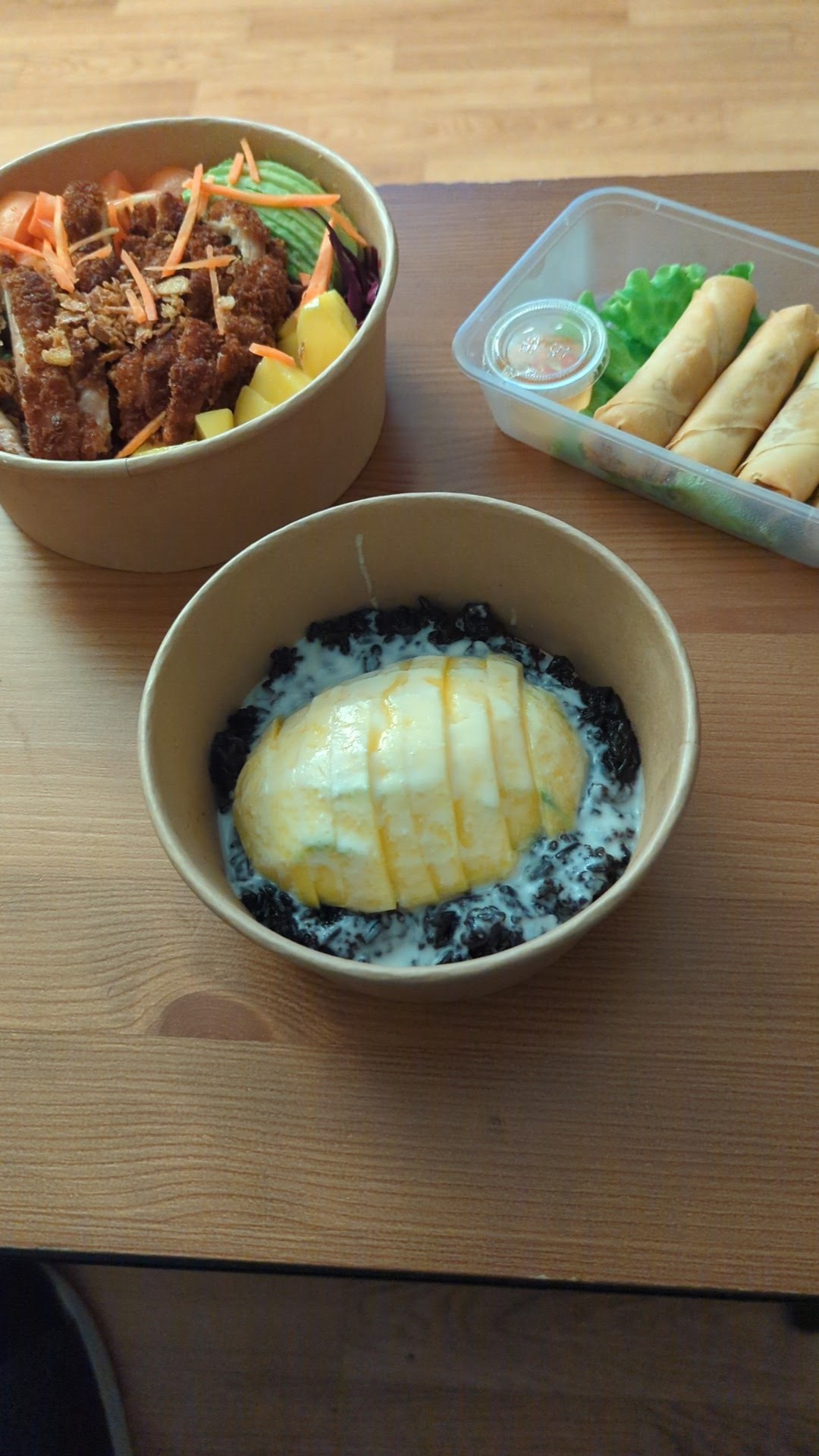 A fuir, le pokebowl avec du riz blanc insipide, des tomates cartonneuse, des radis et du choux rouge, pas dassaisonnement. .bref on est loin d'un bon pokebowl...en plus de ça le poulet frit était trop cuit😓. Le dessert mangue riz noir gluant sauve le repas mais tout ça est bien trop cher !!! 15e pour le pokebowl et 9,90e pour le dessert. Le goût n'y est pas du tout pour un tel prix.