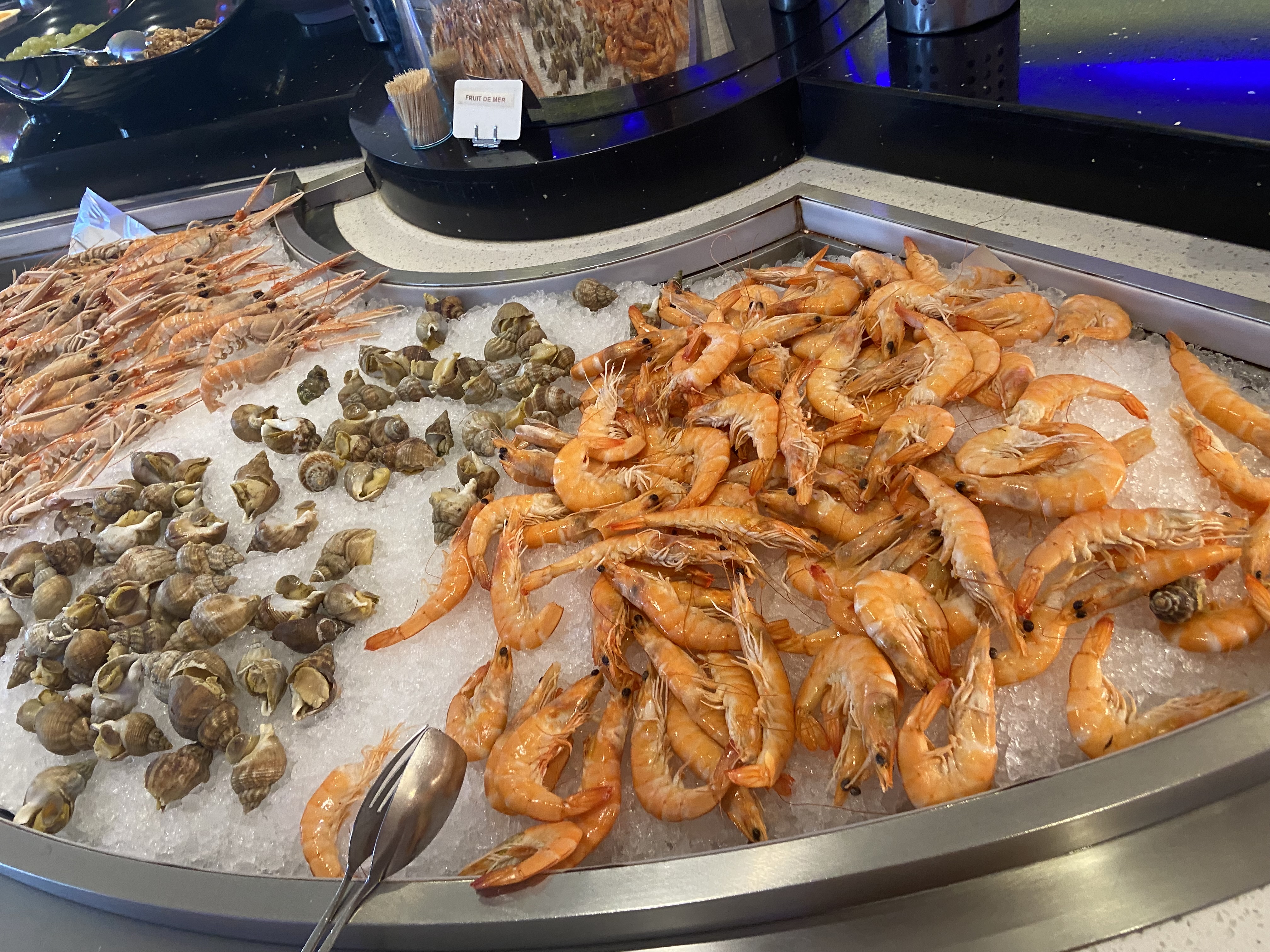 Superbe buffet ! Moi qui adore les fruits de mer, j'ai été bluffée. Grosses crevettes, gambas, st Jacques..... un délice