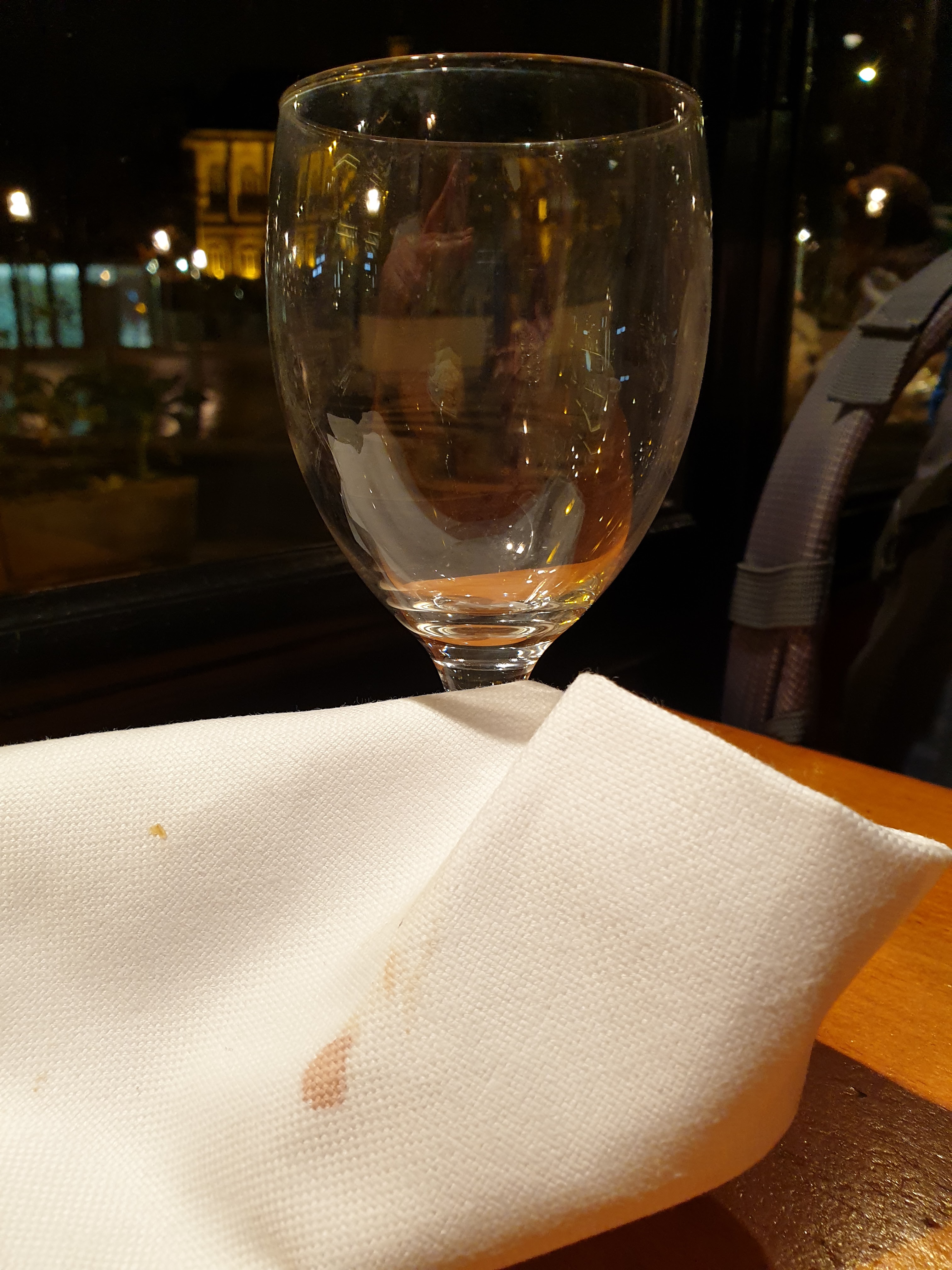 Vraiment déçu de cette visite. Le serveur était très gentil, mais avait du mal à gérer (erreur sur la garniture, il a fallu se lever pour chercher un serveur et obtenir sel/poivre, bouteille d'eau/verre débarrassés avant l'assiette en fin de repas), mais c'est surtout la viande qui était décevante : malgré la cuisson saignante, c'était une semelle. Une belle semelle de 400g, avec un beau nerf au milieu, et contre laquelle il a fallu batailler du début à la fin. Pour de la bonne viande, je retournerai au Black Dog à quelques centaines de mètres. Je passe sur le verre à eau aux traces douteuses, et à la serviette à tâches résiduelles...