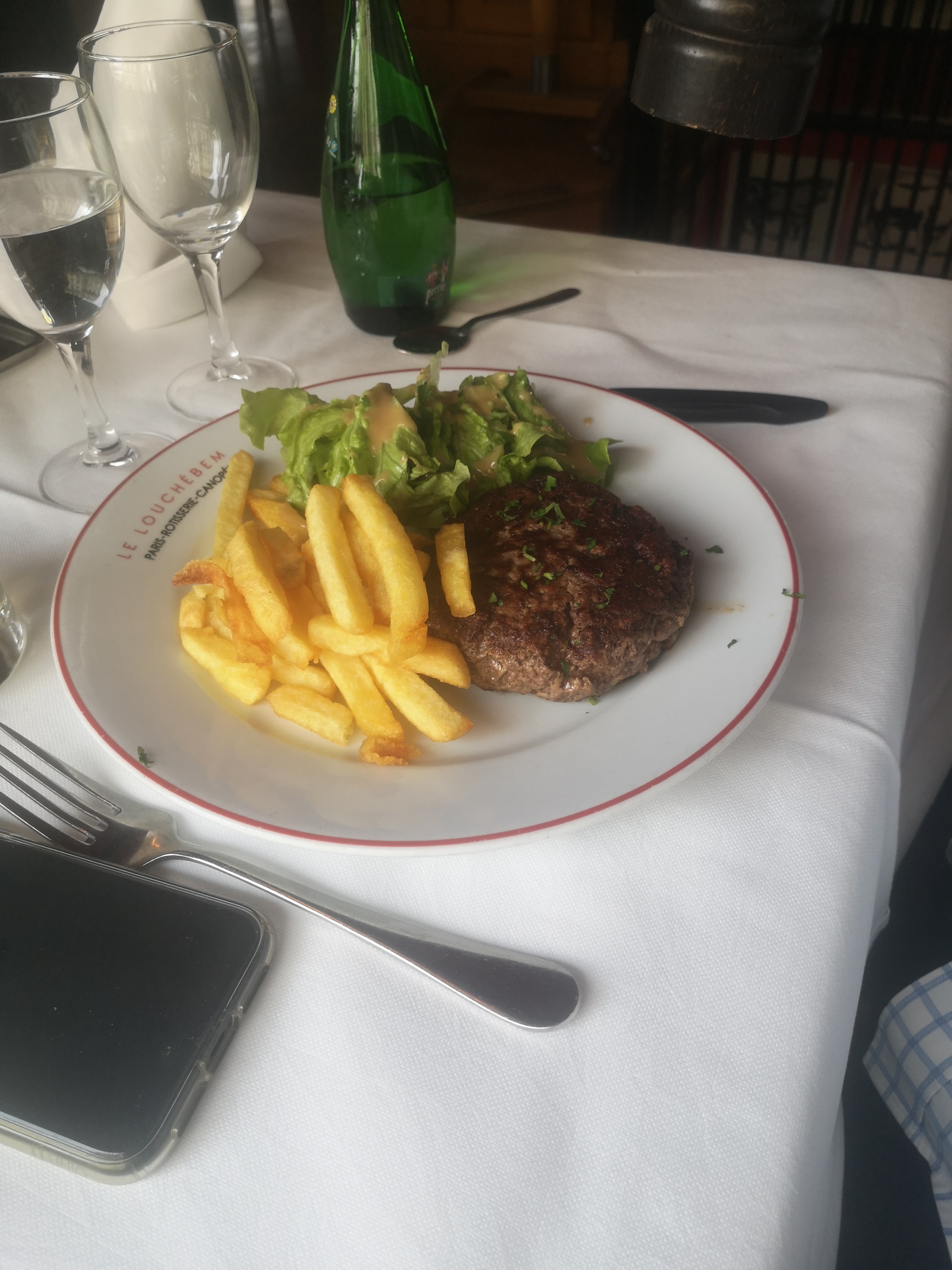 Grand enthousiasme à l'idée d'aller dans ce restaurant mythique. Très bon goût pour la viande mais les cuissons non respectées. Sauces froides. Bonnes frittes. Malheureusement on se sent vite abandonnés par un service trop lent et inexistant. Difficile d'attraper un serveur. La table en terrasse est très agréable. Un peu déçu quand même.