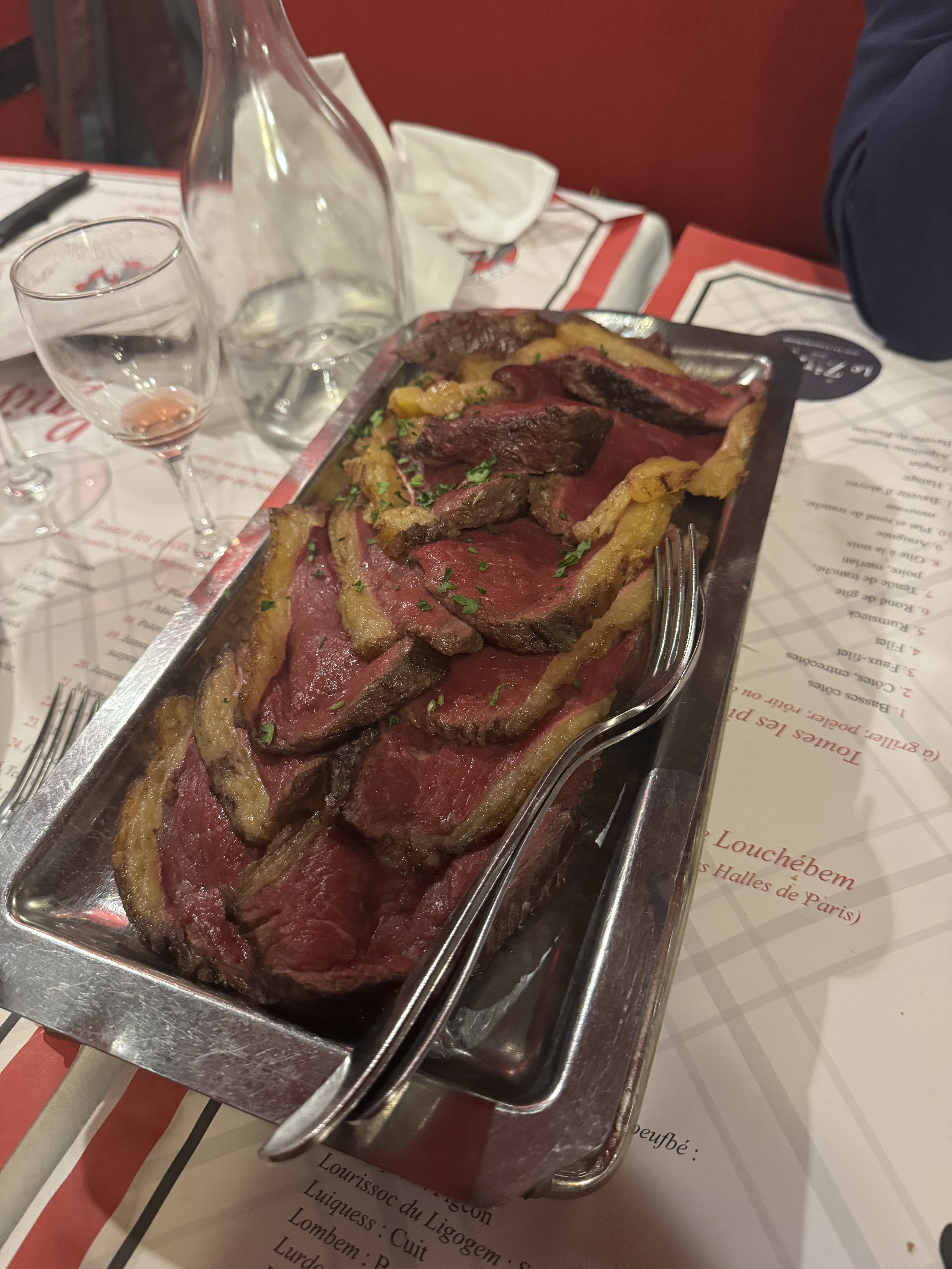 Je n'y étais pas allé depuis 20 ans et j'ai été un peu déçu. J'ai eu un sentiment de banalisation de ce restaurant célèbre avec une multitude de plats, comme moins centré sur la viande, une ambiance moins repère de la bonne barbaque que j'avais en tête. Mais je me faisais peut-être une idée. Celle que j'ai prise était parfaite bien sûr, la qualité est là. Par contre les frites maison sont décevantes, tristounettes (Je connais, nordiste, je les fais moi-même et au gras de boeuf).