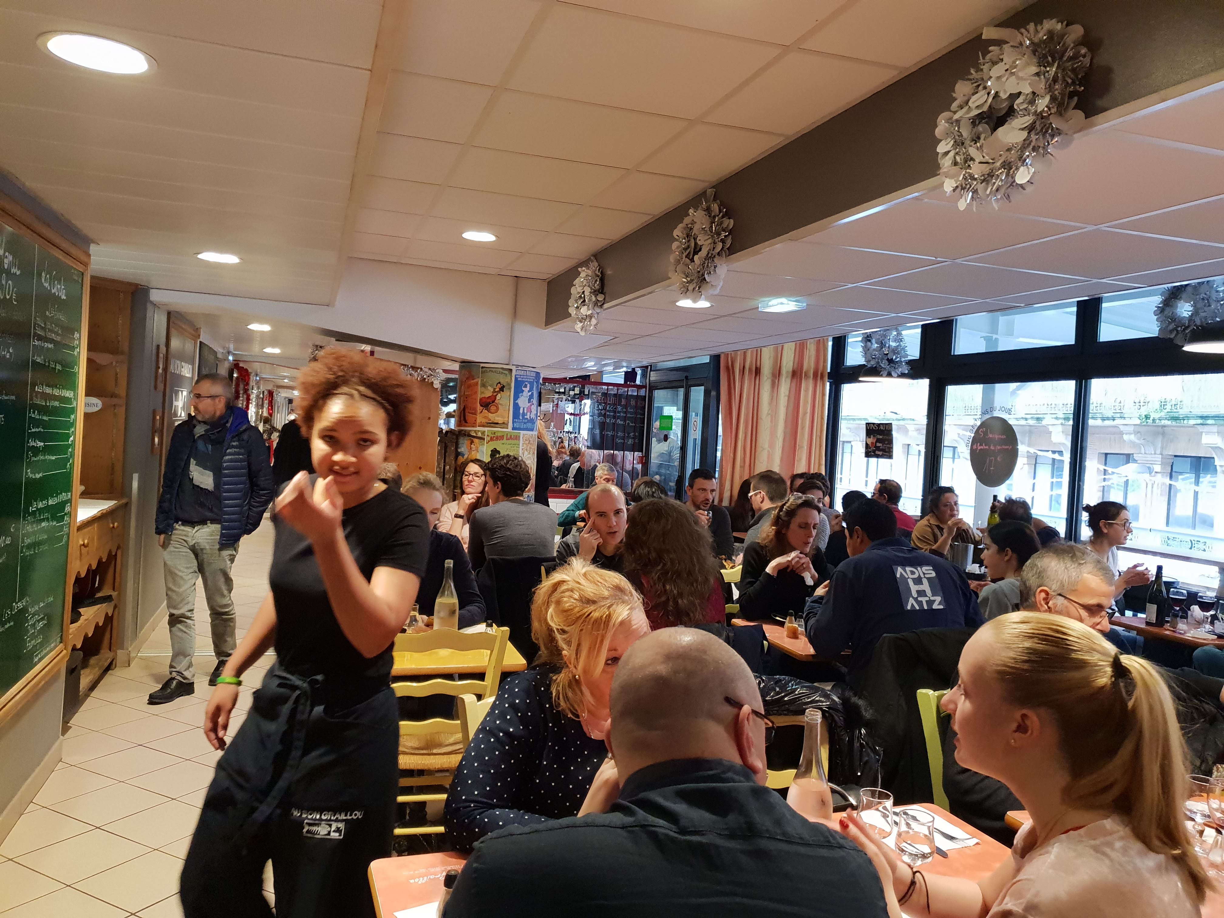 Un endroit chaleureux, convivial, familial et j'en passe... Beaucoup de monde, penser à réserver. Une des serveuses plutôt désagréable, qui donne des coups de fesse à chaque passage entre les chaises (entre les tables) c'est déjà pas bien large et elle vous le fait bien comprendre... Commande de café pas servi mais on vous apporte la note qu'on vous jete sur la table... niveau menu plutôt bon qualité prix seul problème pour ma part quand on propose une entrecôte fois gras, pour moi le fois gras est poêlé et non coupé et pose comme ça par dessus... Par contre un patron génial et certaines serveuse à l'écoute et souriante