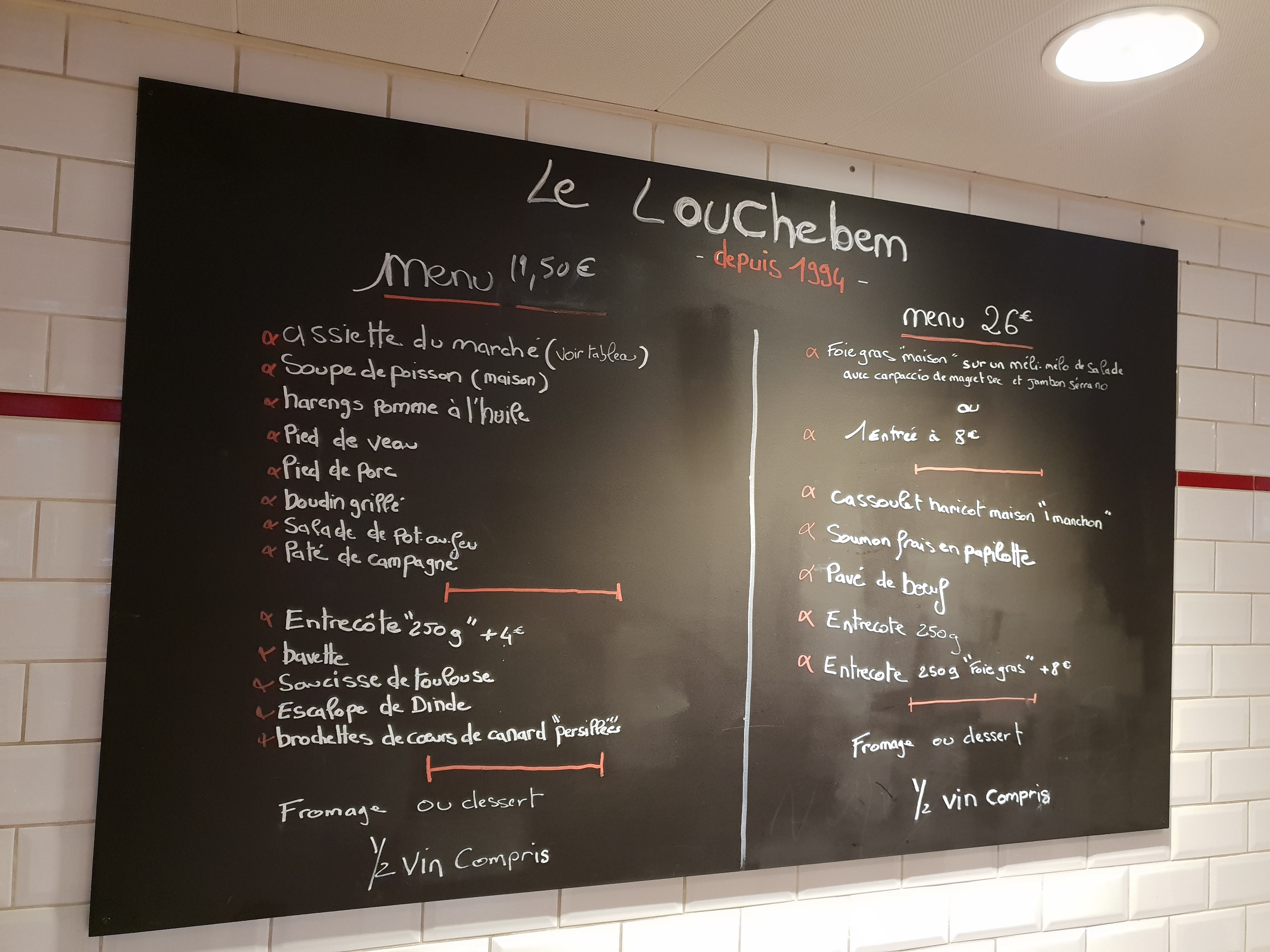 Il est loin le temps ou nous les toulousains pouvions manger au louchebem une bonne entrecôte frites avec un pichet de vin pour un prix abordable . Prix du vin au verre excessif ,dessert moyen , prix qui grimpe bref c'est plus ca dommage !
