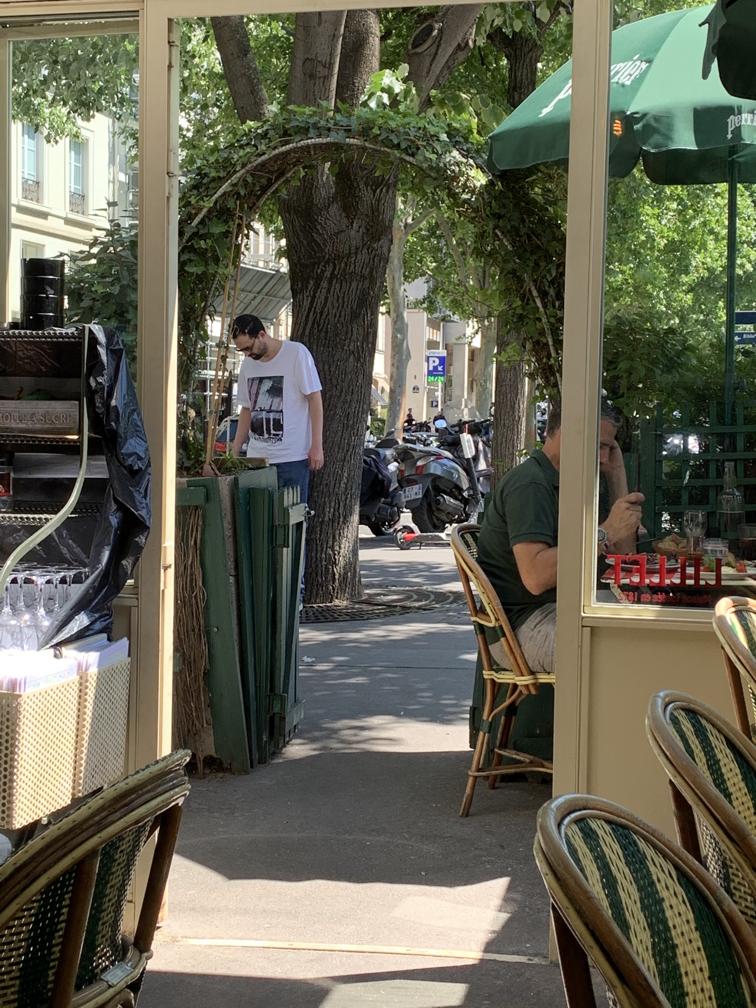 Arrêt terrasse sous le soleil pour un thé glacé qui était bon pourtant donc tout commençait bien Serveurs moqueurs (on nous fait sentir que l on vient de province), brusques dans leurs réactions La serveuse nous enlève une bouteille non terminée. Nous lui faisons remarquer. Elle nous fusille du regard et grommelle Paris va devoir briefer son personnel avant les JO pour donner une image accueillante aux autres nations Cela ne nous a pas donné envie de rester pour nous restaurer Déplorable