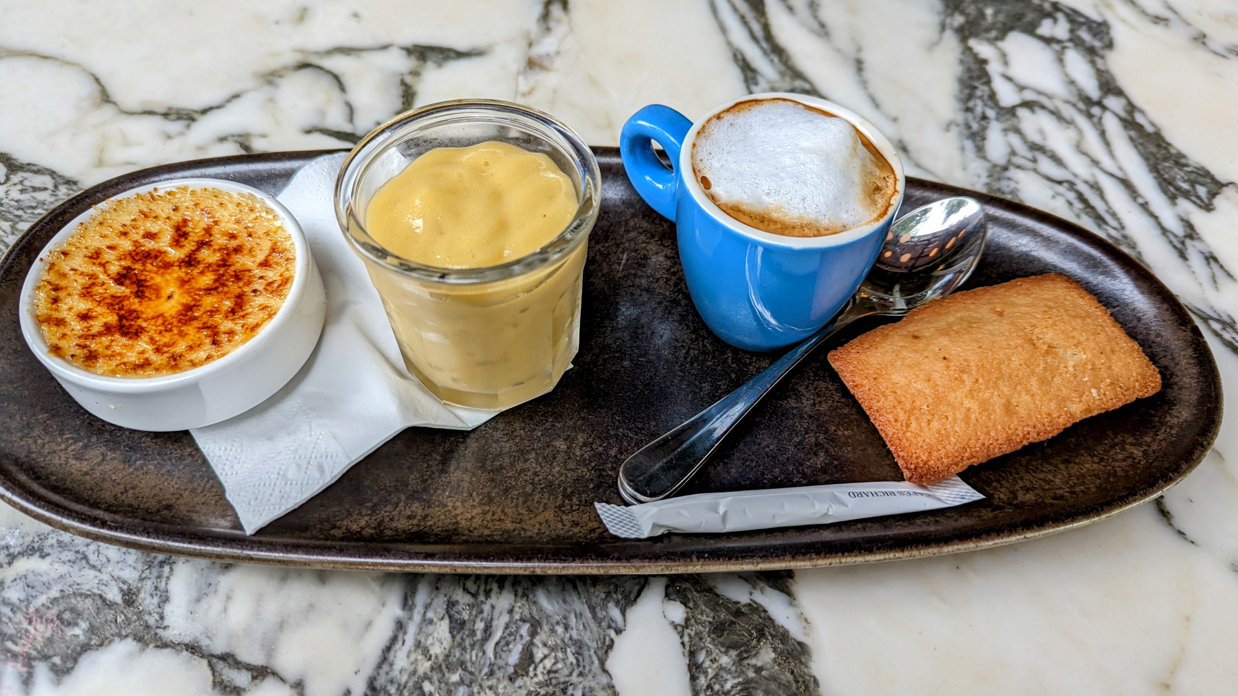 Honteux ! Service déplorable (très lent et tellement méprisant qu'on se serait cru dans un mauvais film...) + un morceau de plastique dans le cappuccino !!! Et des tables en marbre raffistolées à la va-vite... Louis Philippe doit se retourner dans sa tombe...!