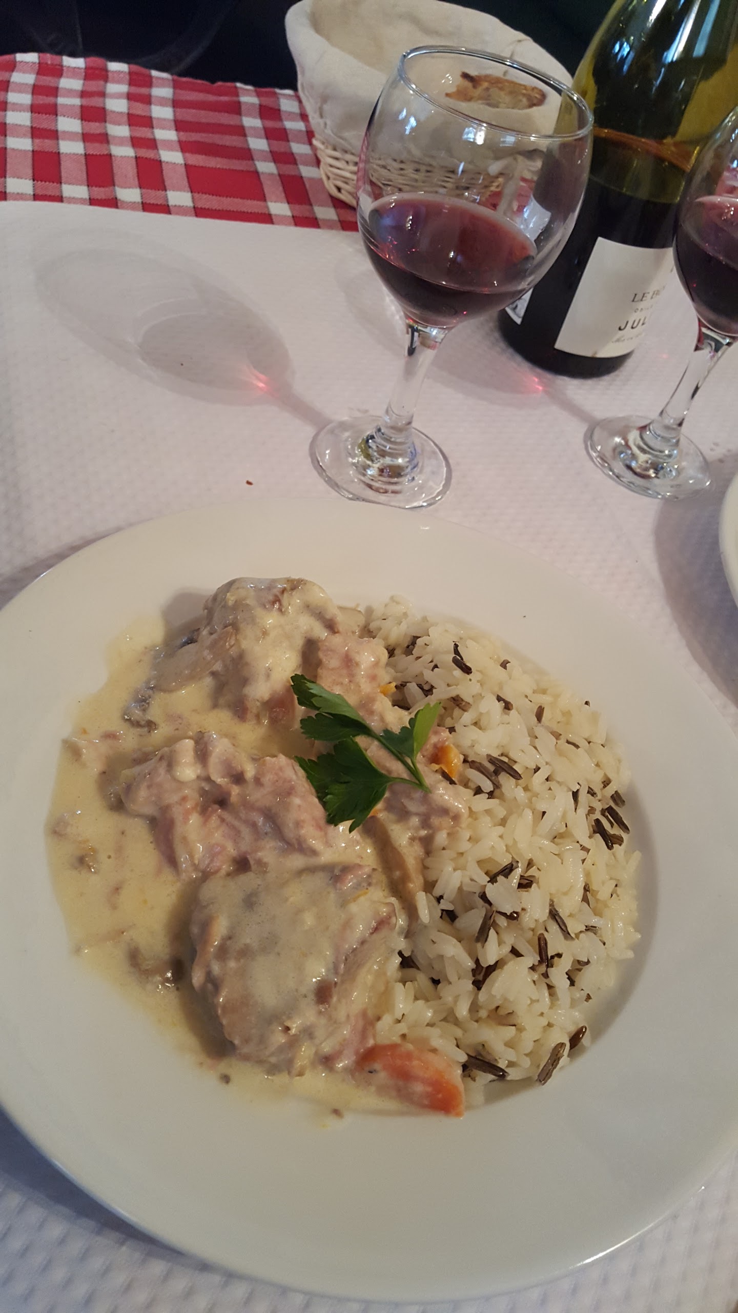 Très bonne blanquette de veau fort appréciable en sortie d'un covid qui m'a privé du goût et de l'odorat, excellentes profiteroles maison. Bravo à toute l'équipe