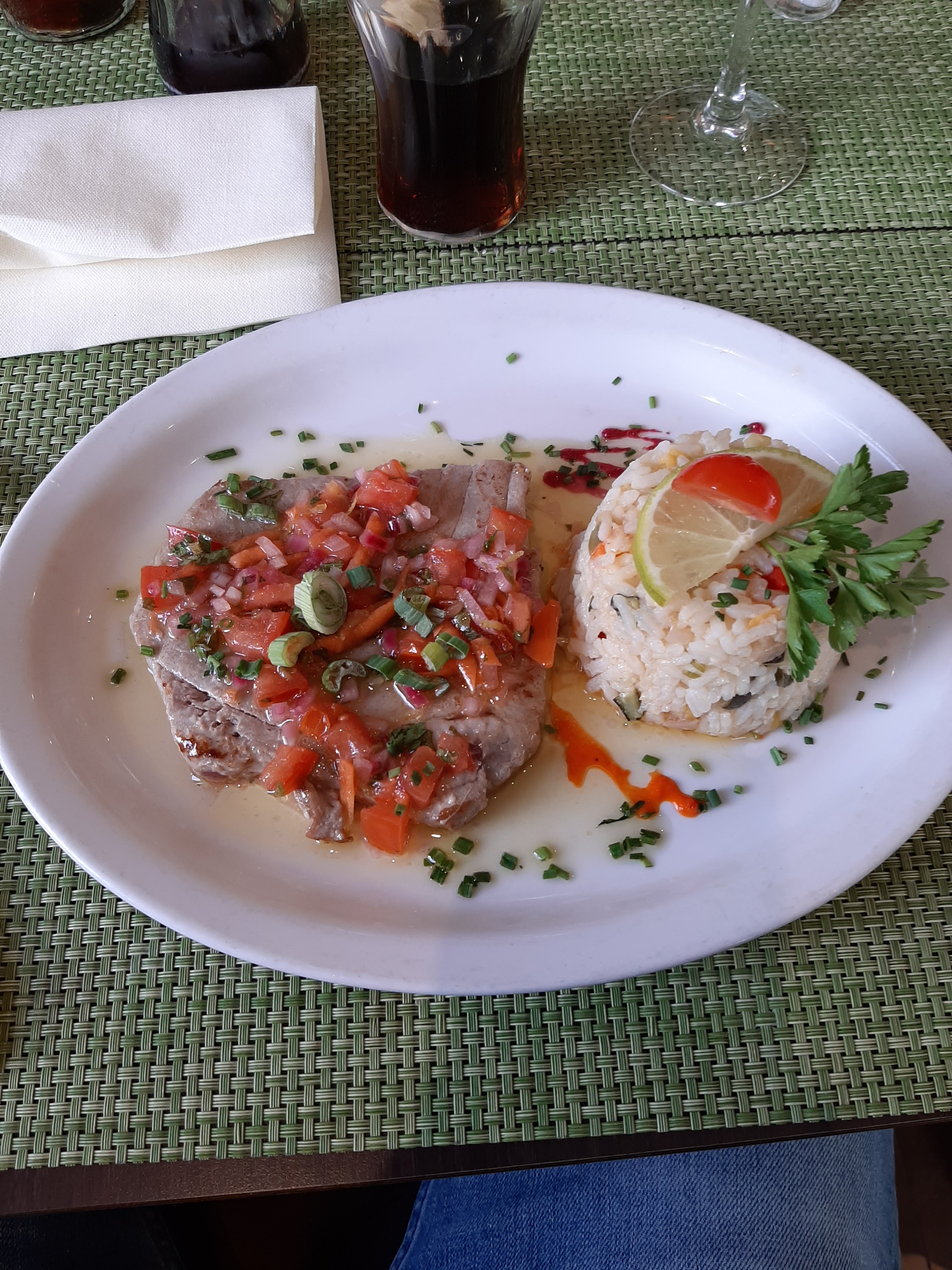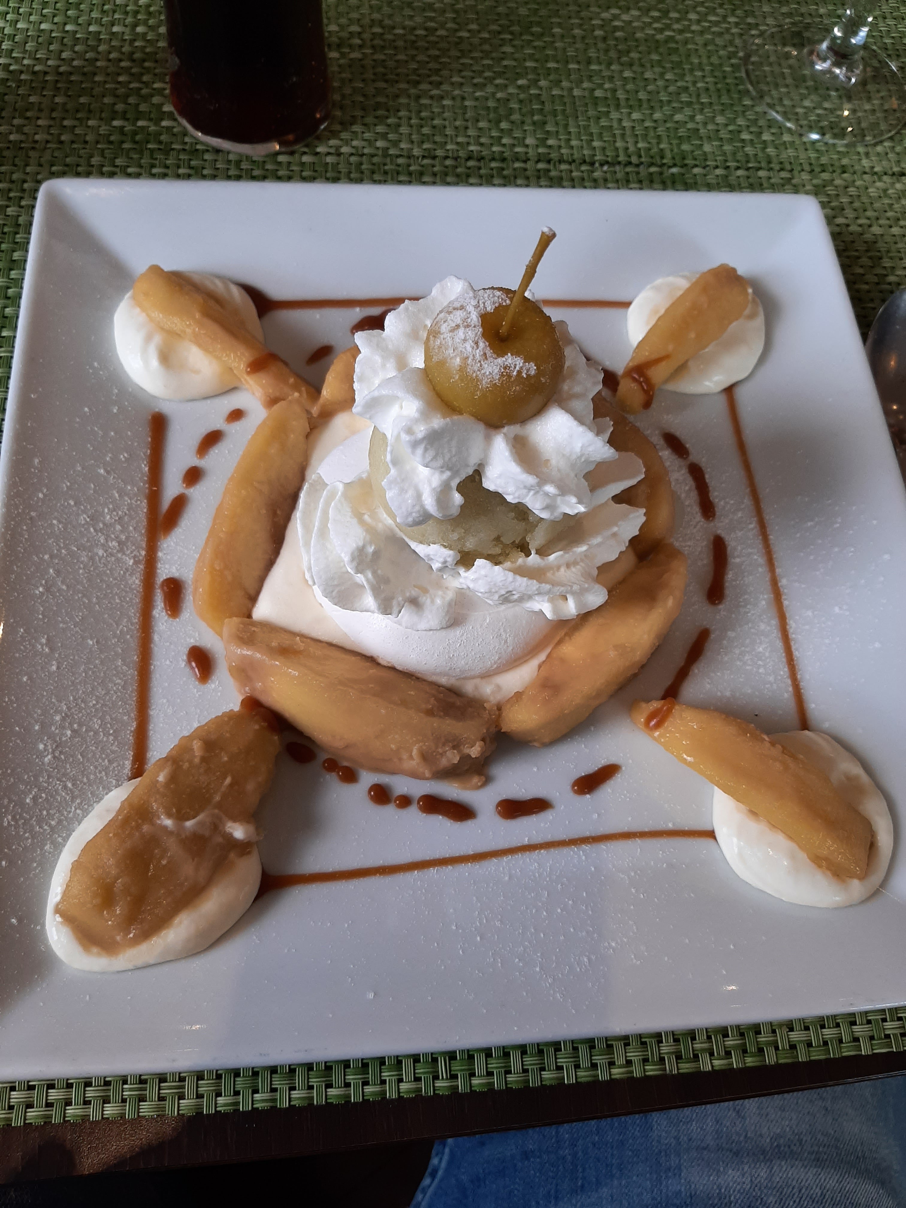 Le déjeuner etait copieux et bon. Tartare de thon, frites et salades, en dessert ile flottante, 18€ le tout. Service un peu long lorsqu'on est nombreux.