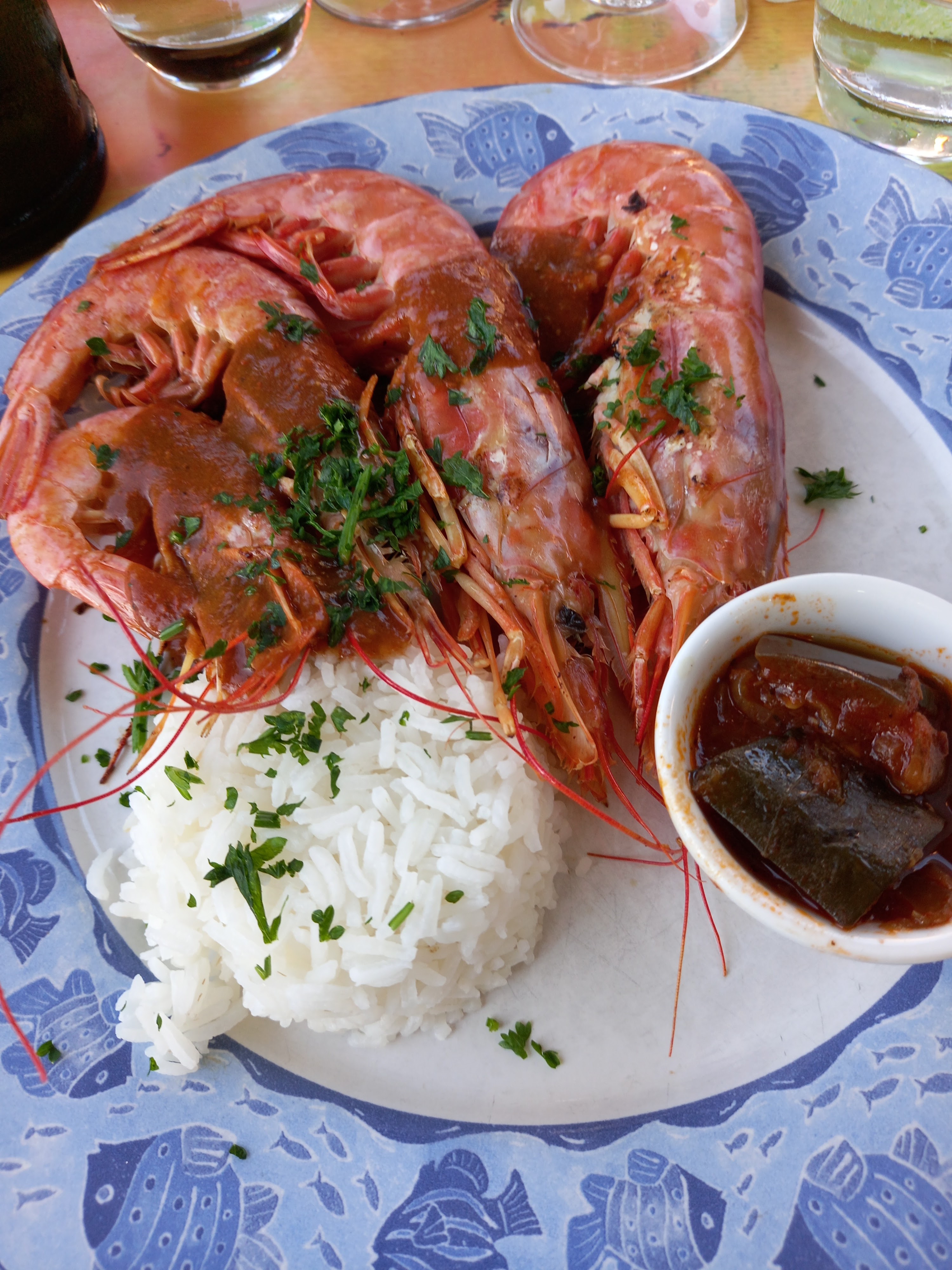 Très bien ! Nous avons été alléché par la carte à l'extérieur et nous n'avons pas été déçues ! La soupe de poisson est extra et la salade de poulpe très bonne. La suite (gambas et gratin) bien aussi. Pour les enfants un menu intéressant : bon et pas cher ! Avec entrée de crevettes pour les gourmands. Le service est agréable nous n'avons rien eu à redire. Et pour ne rien gâcher le prix est vraiment raisonnable ! Note pour le restaurant : la petite qui a mangé un menu enfant sans entrée suggère que vous ajoutiez un ou deux nuggets 😉 Mais Merci pour ce repas 😊