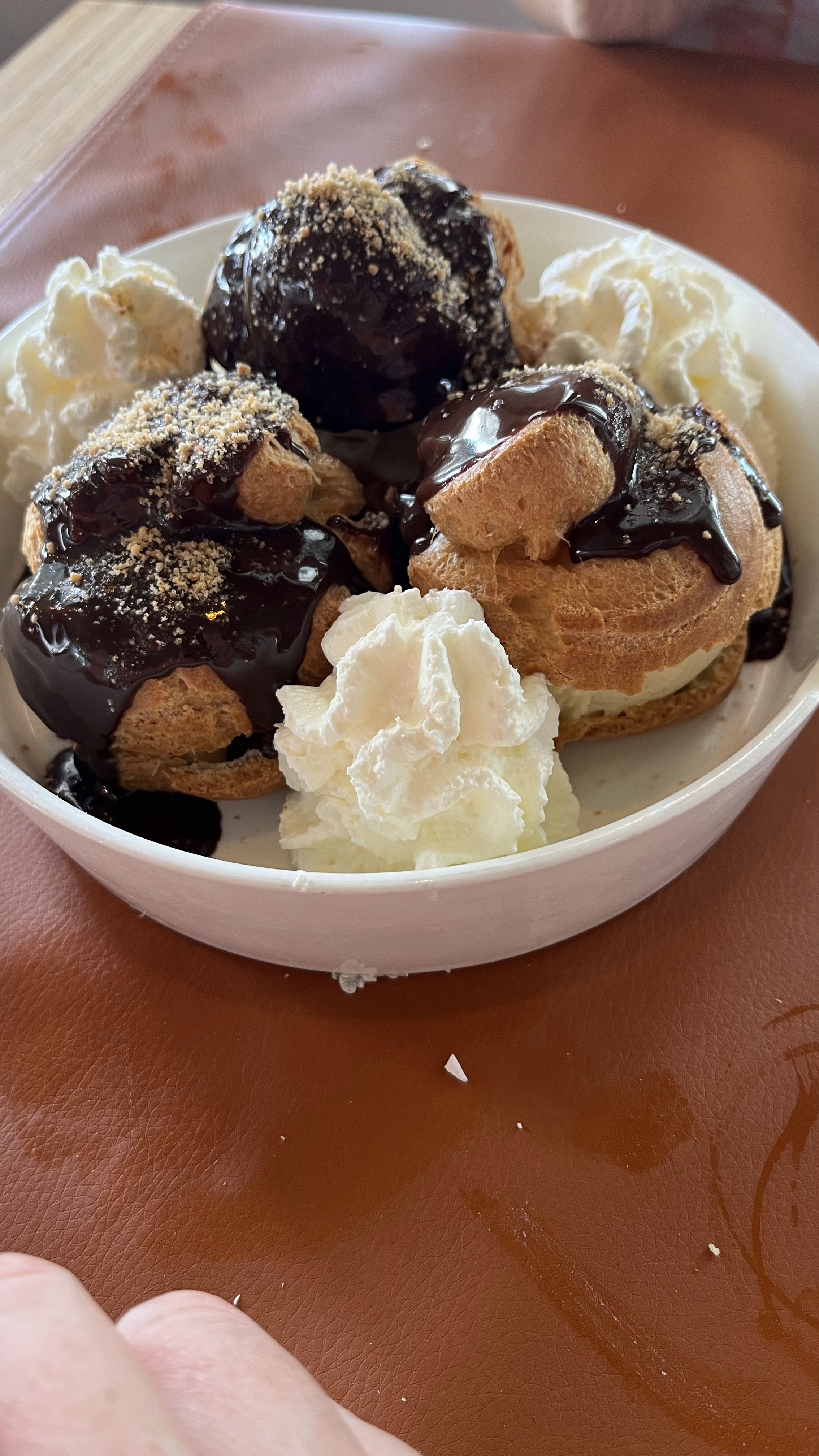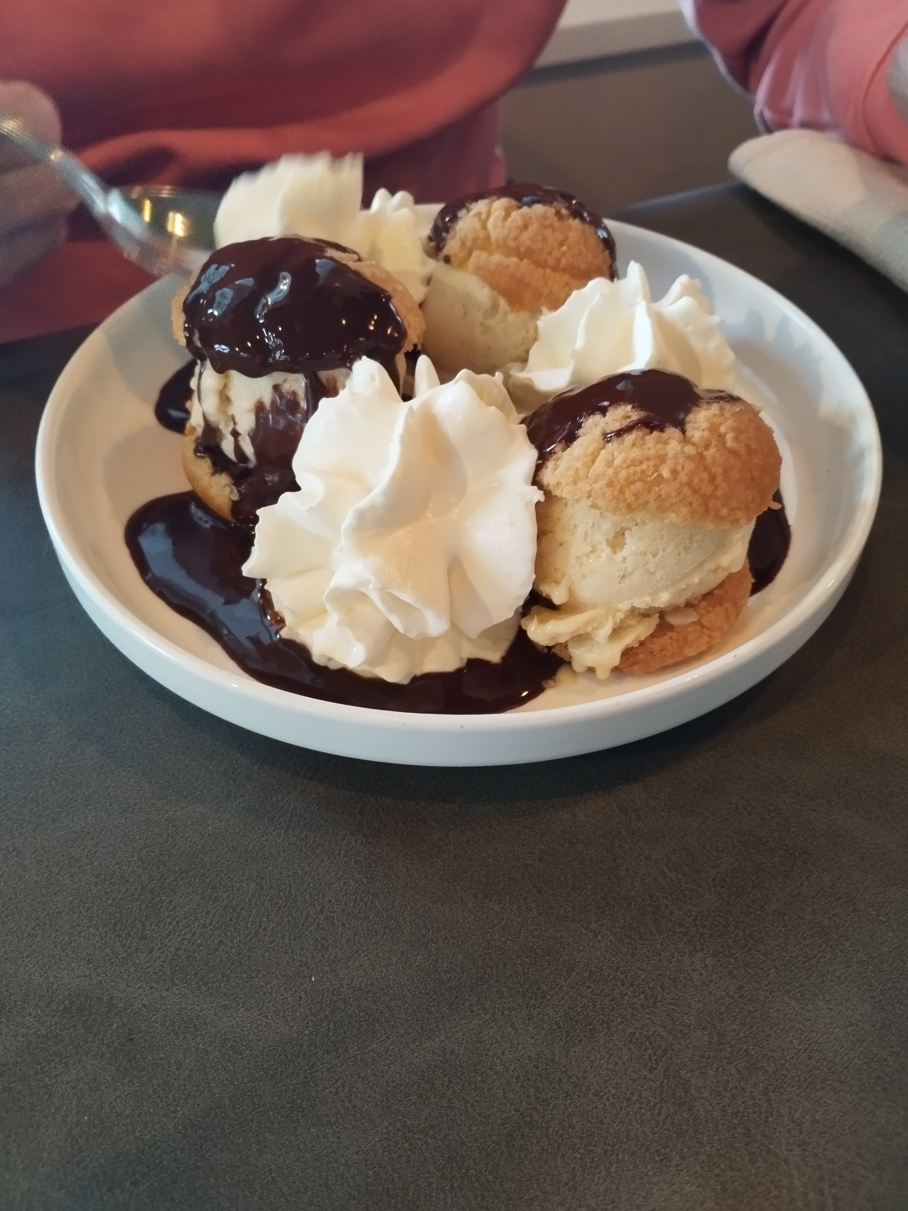 Excellent plateau de fruits de mer, super frais et bien préparé ! Profiteroles énormes, à tel point que nous avons renoncé à manger la troisième !