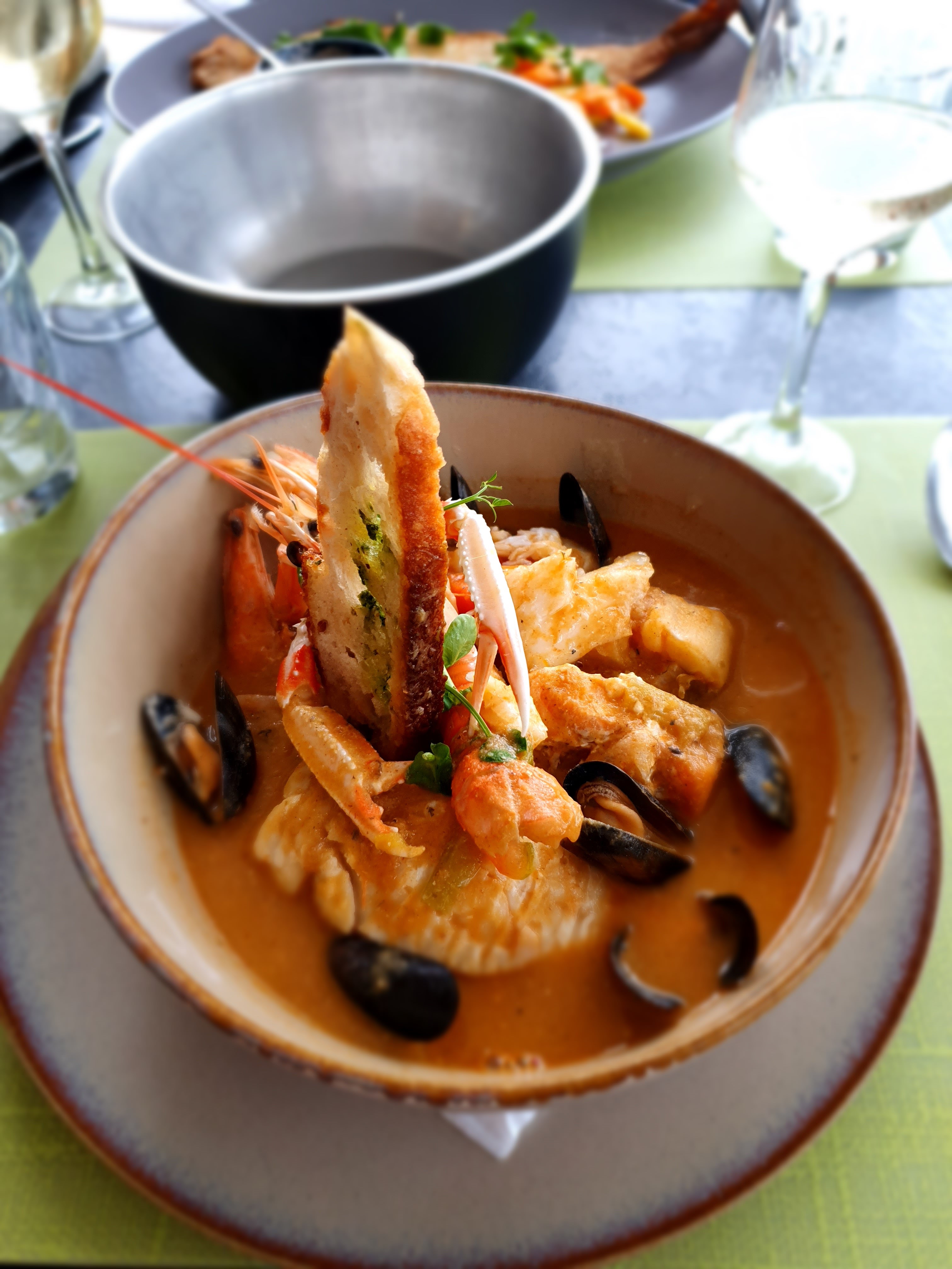 Un très bon accueil que ce soit le patron ou les jeunes serveurs très dynamiques et au petit soin. J’ai testé la bouillabaisse en plat principal et les profiteroles maison du loup de mer, un régal. Assis dans la véranda, je profite de la vue ;-) Je recommande ;-)