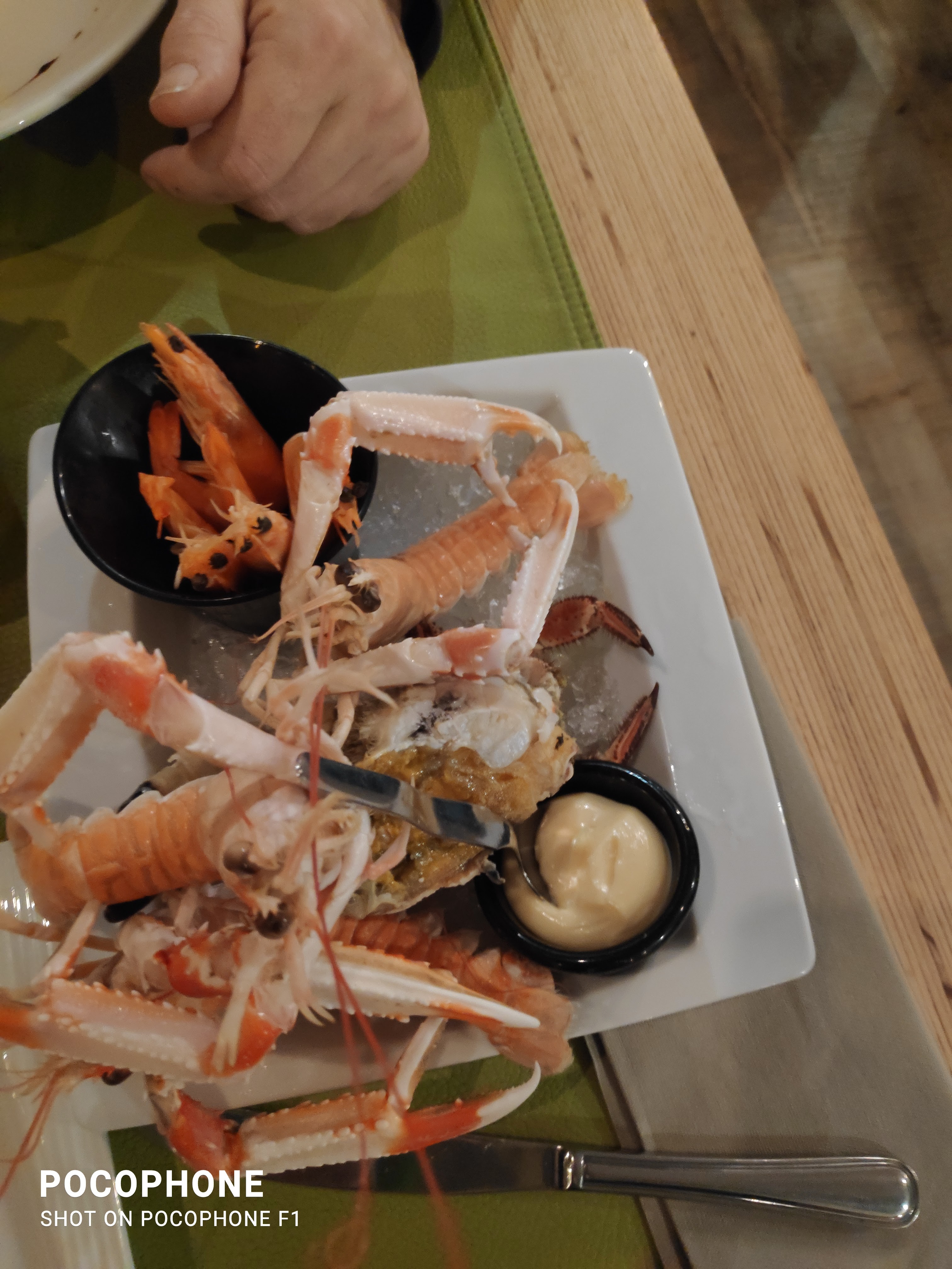 En entrée fruit de mer pris et une assiette de suggestion au saumon fumé, très savoureux les deux ! En plat principal, nous avons tous les deux pris les moules mais nous avons trouvé cela moins. Une très petite partie a été reçue et la plupart des obus étaient encore fermés. Les frites de mon mari étaient encore crues et nous en avons eu d’autres. 1 fois mais ne vaut pas une deuxième visite pour nous