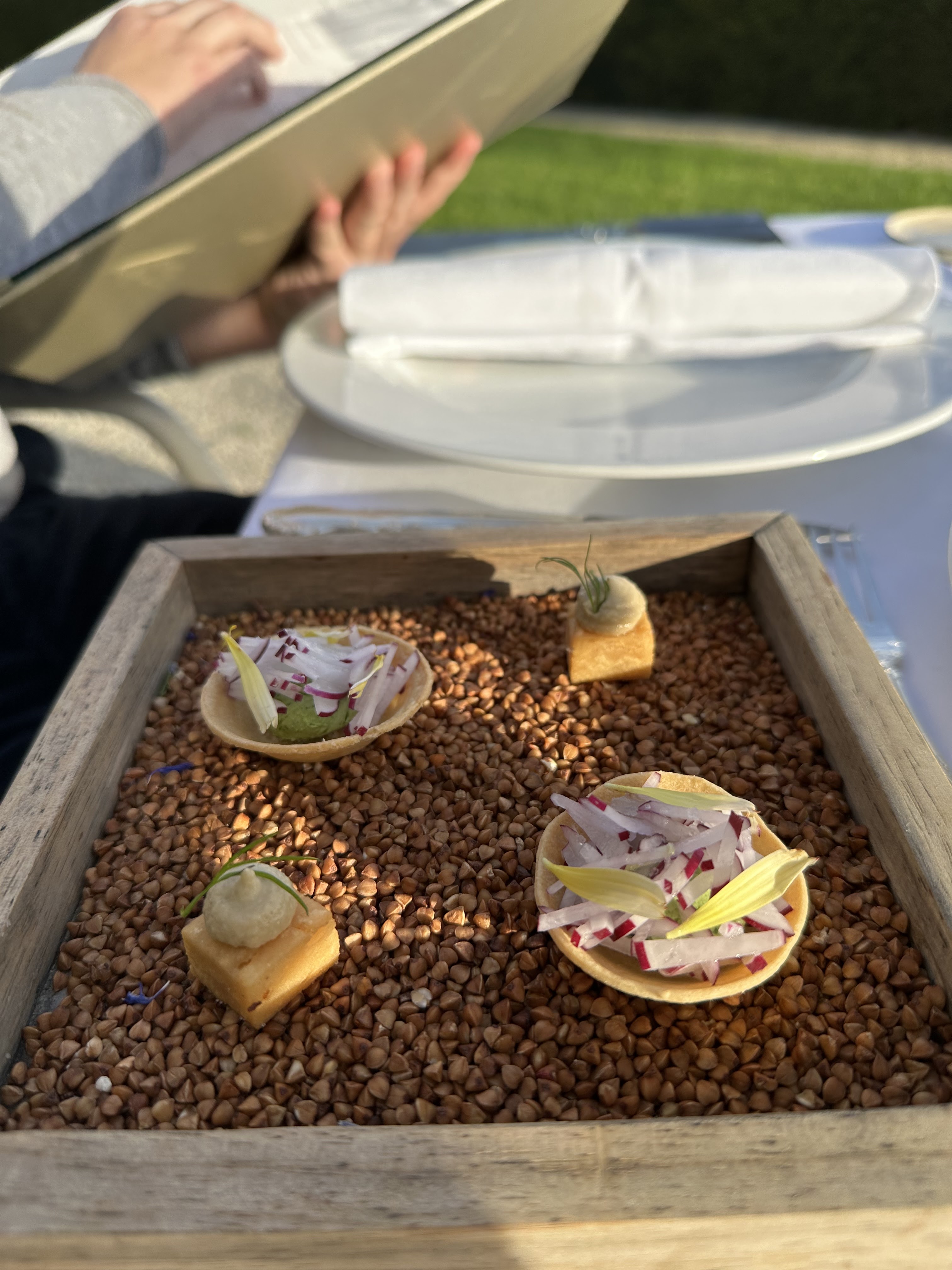 Un lieu tout en délicatesse.... Très bien accompagné par Mélanie au service, pour un moment délicieux aux saveurs d exception, merci au chef Maxime pour sa créativité, la beauté des plats.