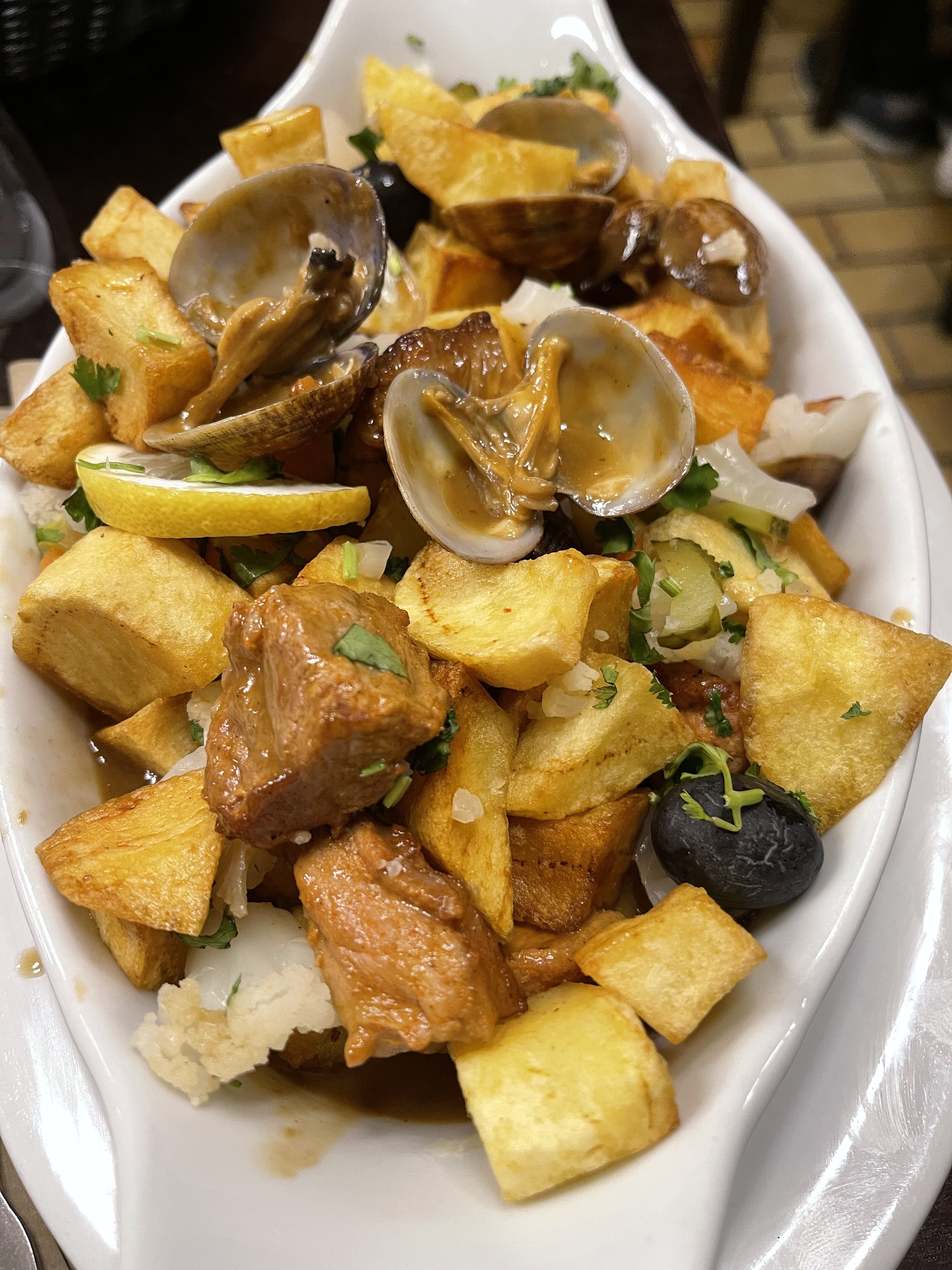 Bonne cuisine portugaise, heureusement qu'il n'y a aucun problème pour avoir un doggy-bags après une entrée et un plat ! Le reste de mon porc aux coquillages m'a fait mon dîner !
