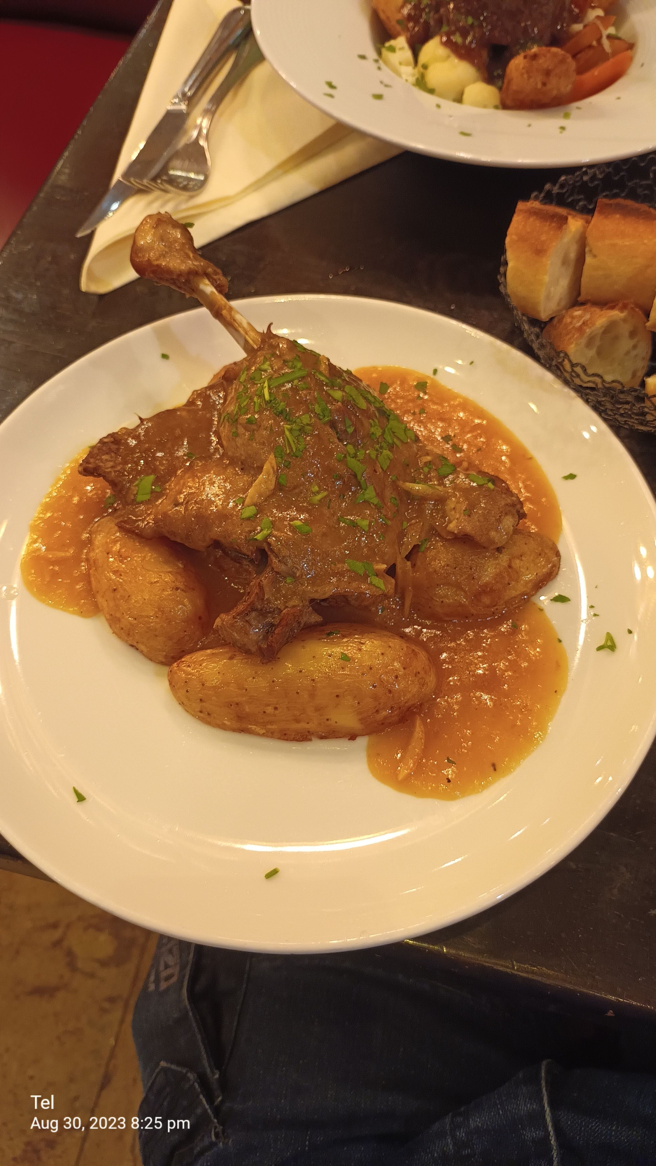 Nous avons dîné ici après avoir été recommandés par un ami. Le restaurant avait l'air vraiment français authentique avec une atmosphère agréable. Le personnel était très gentil et serviable. Nous avons d'abord commandé le canard à la sauce à l'orange pour chacun de nous, mais le serveur nous a suggéré d'essayer également le fondani de bœuf. Il s'agit de bœuf cuit lentement pendant 17 heures. Les deux repas étaient savoureux à la bouche? Je les recommanderais certainement comme plats principaux.
