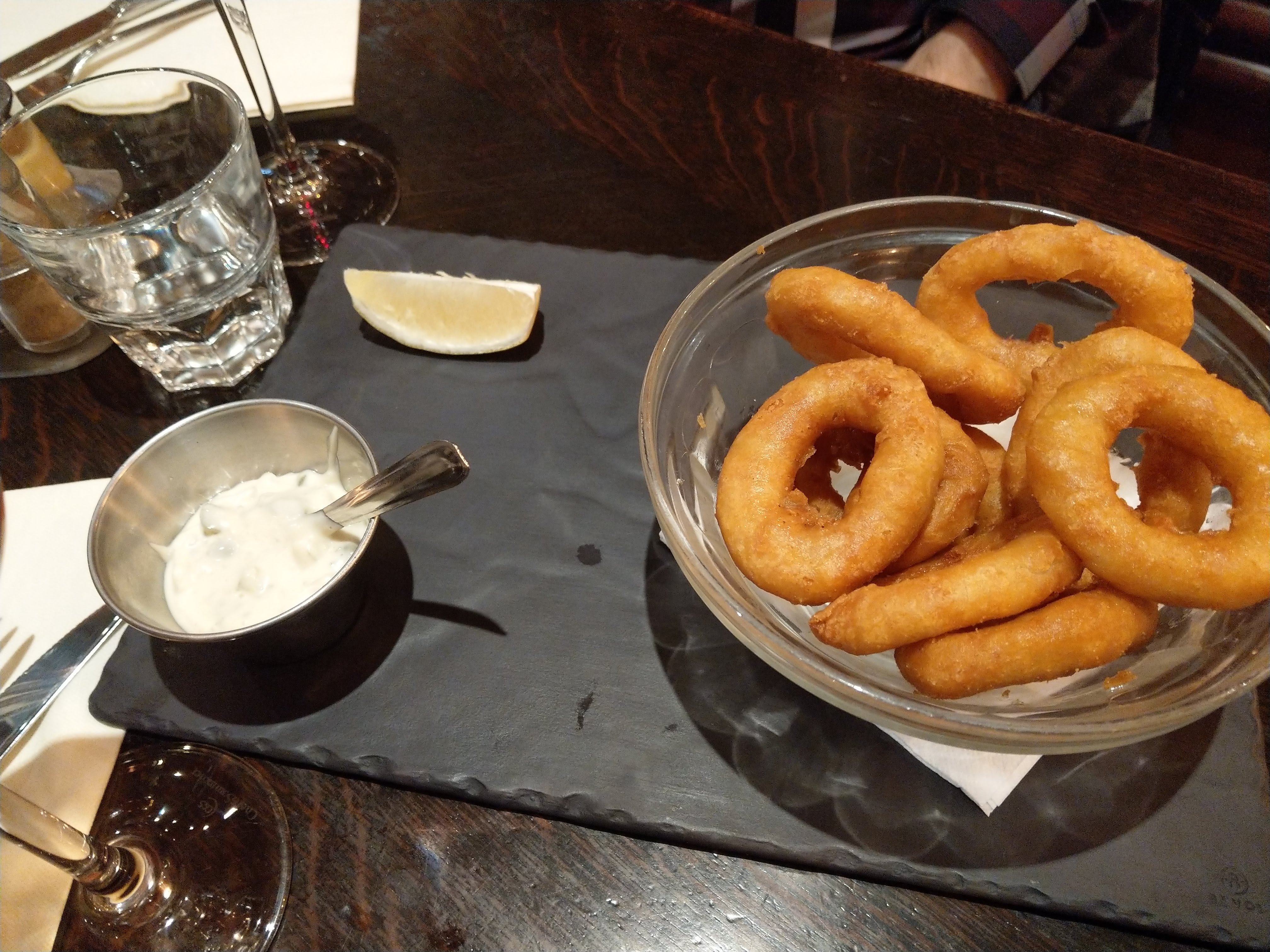 Bon restaurant situé dans une rue principale. Le restaurant est assez grand et joliment conçu. Le menu est basique et pas si cher. La nourriture était correcte - les calamars étaient vraiment savoureux mais les moules étaient un peu insipides. Le burger et le saumon étaient délicieux. Le service était lent mais aimable.