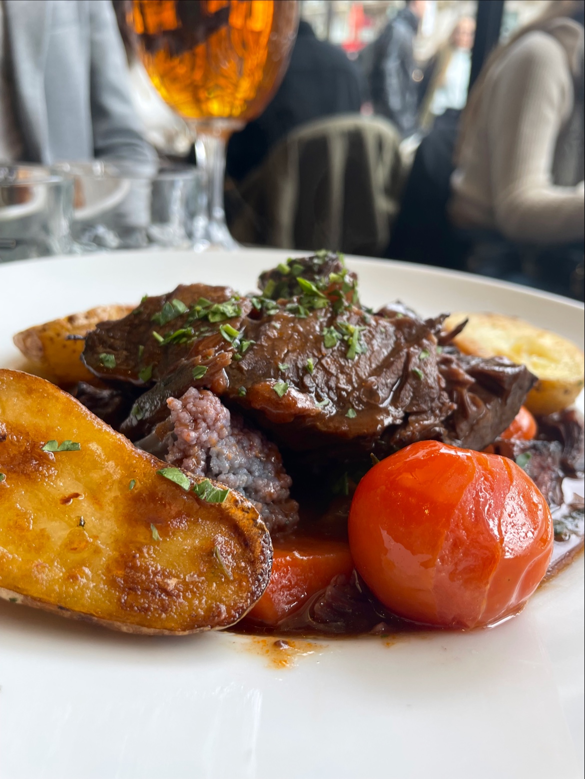 Great food, their Fondant de Bæuf façon Bourguignonne was delicious and tender. Never tried Œuf bio poché, poêlée de champignons crémée, croutons persilles, but it was surprisingly good.