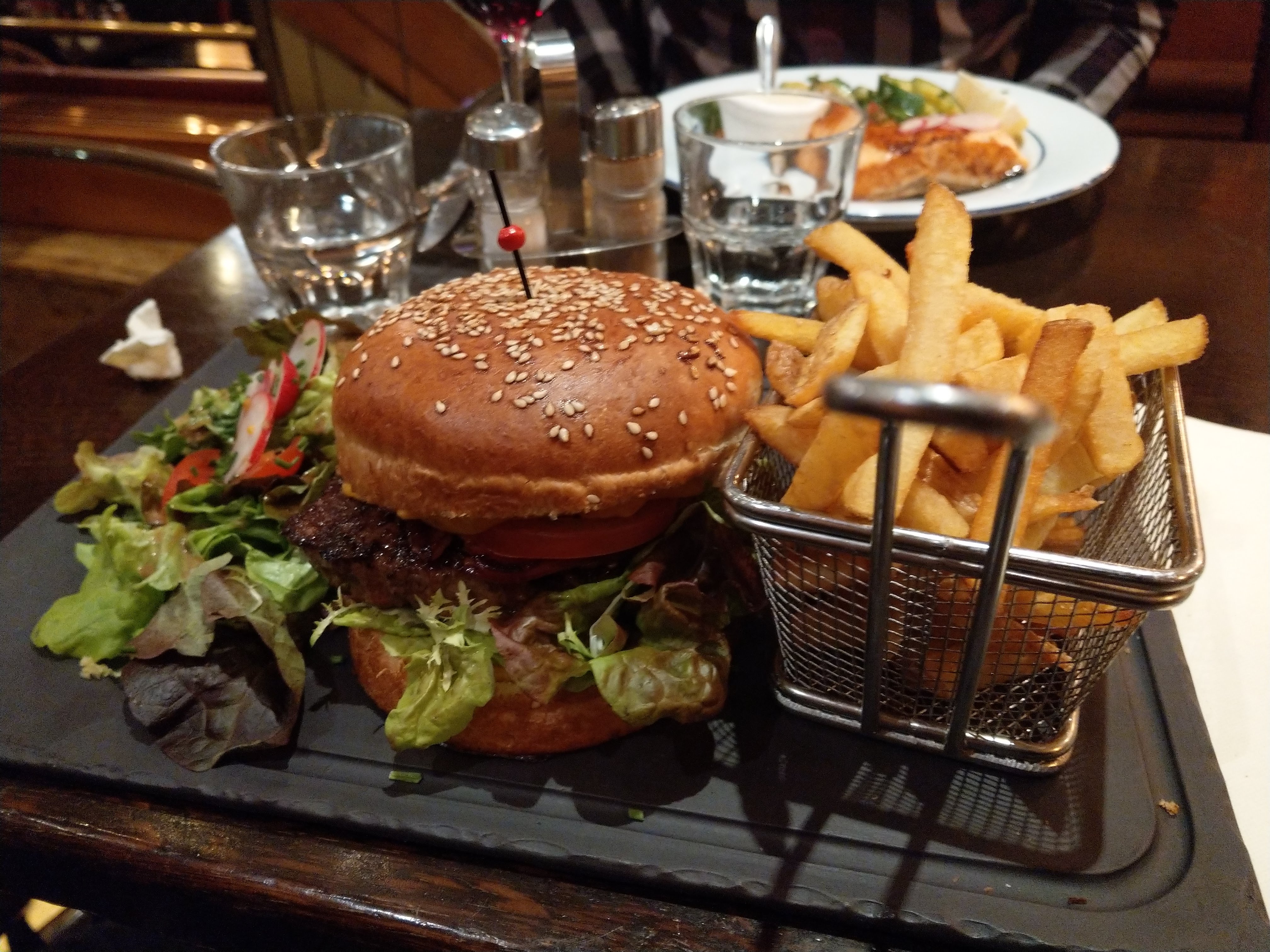 C'était notre premier repas à Paris et cela valait bien les 3 500 milles qu'il nous a fallu pour l'obtenir. Le burger fondait dans la bouche et la salade César était délicieuse. Notre serveur était spectaculaire, Amandine, elle nous a très bien accueillis. Elle était chaleureuse et très gentille. Elle a représenté à la fois le restaurant et son pays avec un esprit tellement brillant, chapeau bas à elle et au Lutèce !