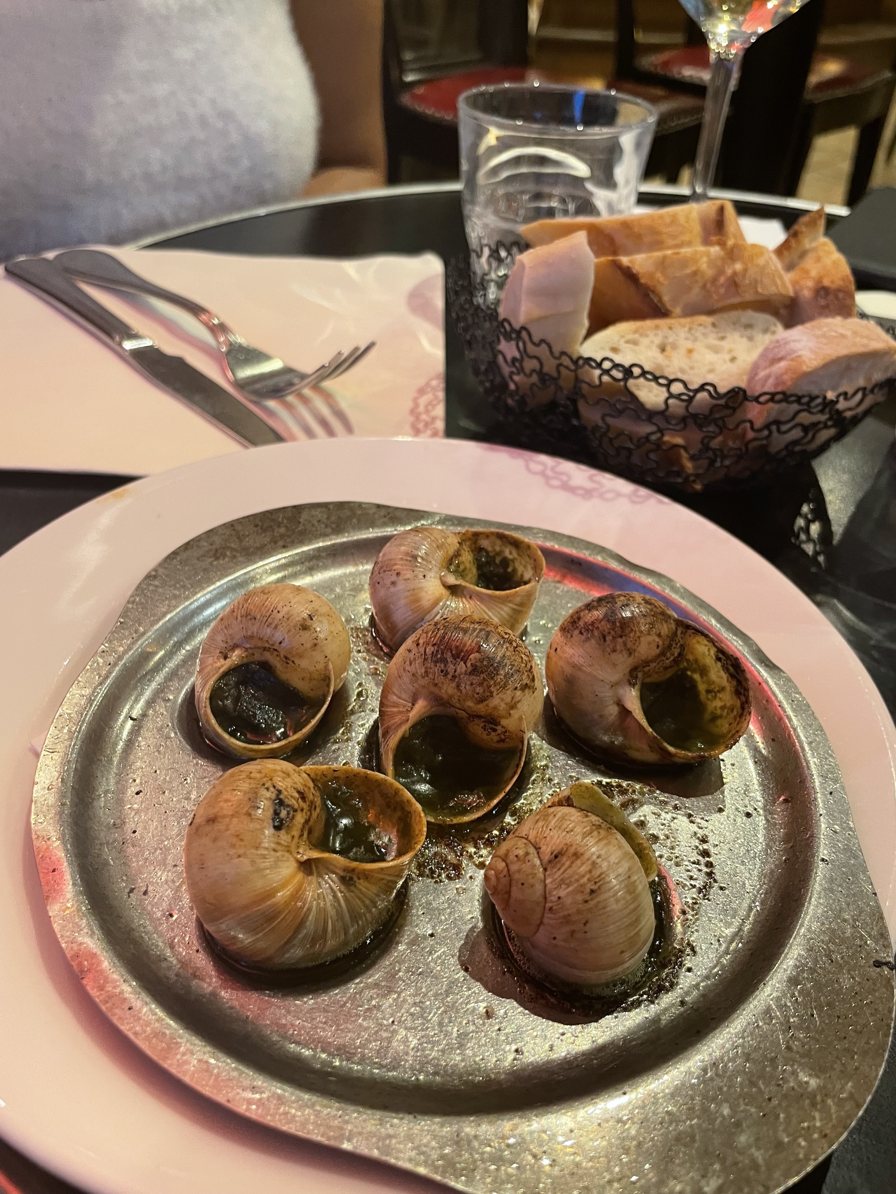 J'étais vraiment curieux de connaître les escargots, et ils me surprennent positivement car ils sont très savoureux. Nous mangeons également un bœuf cuit au vin et une crème brûlée qui étaient également super délicieuses. Je recommande totalement