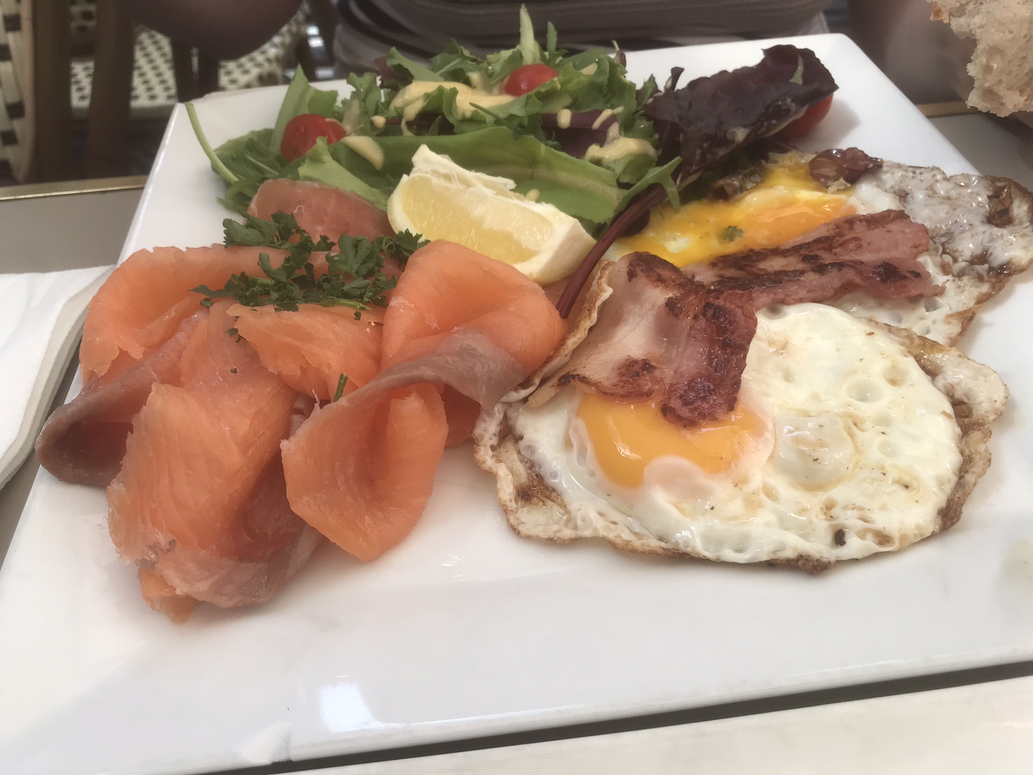 De passage à Lille nous avons brunché sur la place général de Gaulle. 22€ café jus d’oranges et œufs sur le plat bacon (ou saumon). Et gaufre chocolat ou speculoos. Un pain d’excellente qualité.