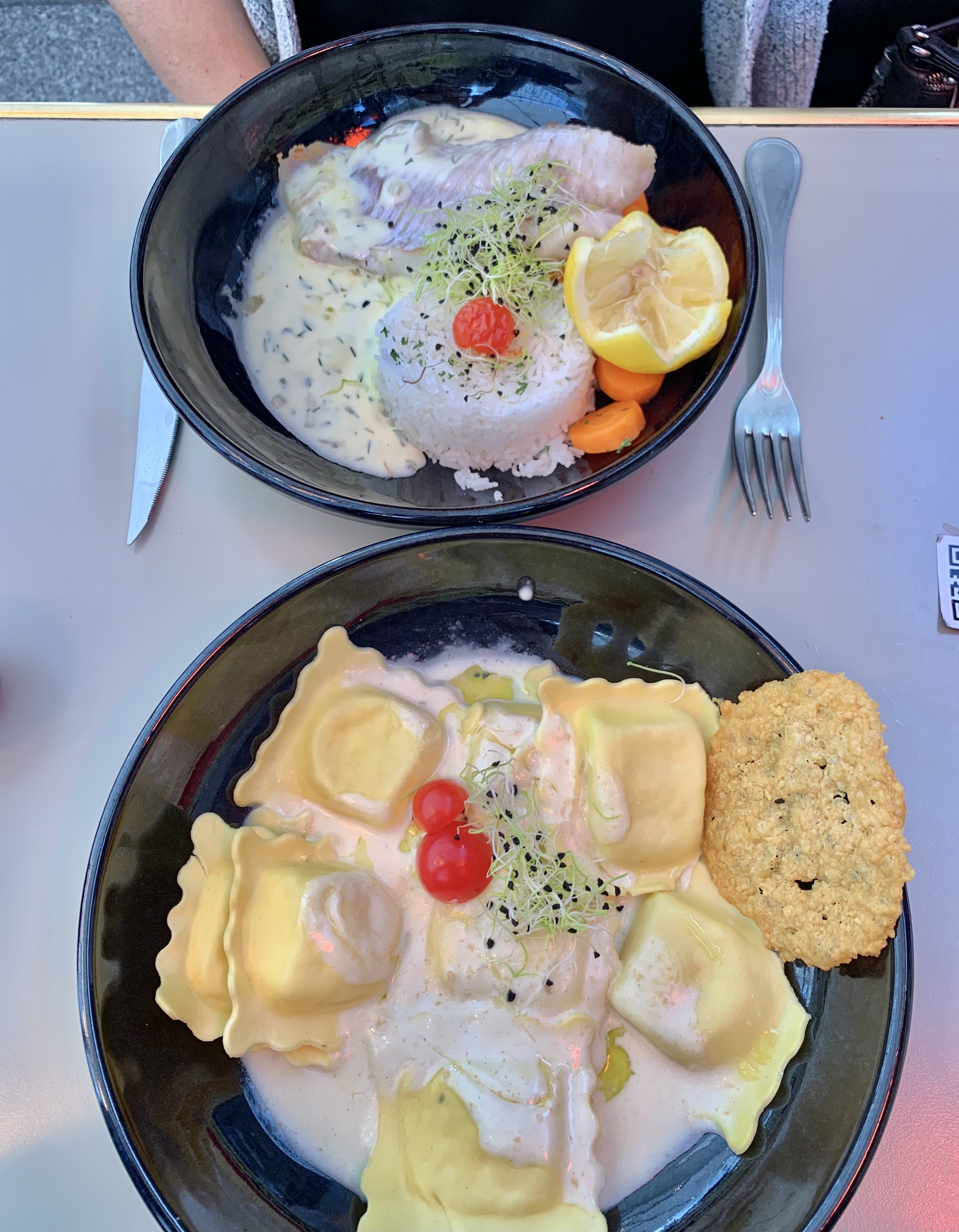 Restaurant très sympathique. La terrasse est fort agréable et chaleureuse. J’ai pris les raviolis à la truffe et c’était un régal. Ils sont bien farcis et la sauce de parmesan est très bonne. Je recommande cet endroit et y retournerai sans problème.