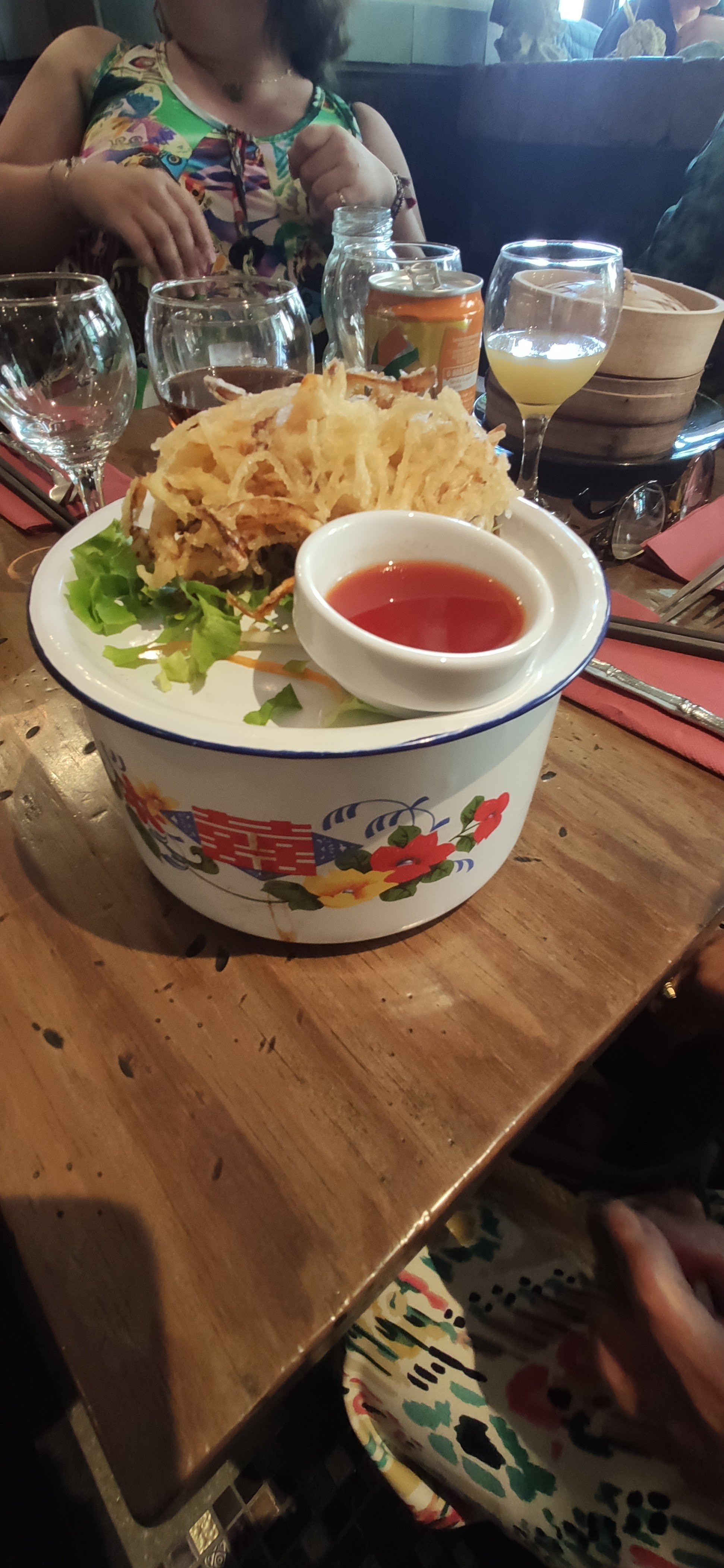 Dîner absolument parfait. Comme ça les termes sont dit. Je vais commencer par le service. J’ai rarement vu un service aussi parfait. Le jeune serveur était là quand on en avait besoin, discret quand il le fallait, et une amabilité, professionnalisme sans pareil. Merci beaucoup à vous pour avoir participer à rendre ce repas parfait. On enchaîne avec la nourriture. J’ai oublié de prendre en photo les nems mais c’était les meilleurs nems que j’ai mangé à l’heure d’aujoud’hui, léger, bien garnie… Les travers de porcs étaient absolument trop bien cuits, la sauce hongzhao excellente. Le Bo Bun etait également très bon (d’après ma copine), pour moi j’aime pas la citronnelle donc… Les beignets banane avec une sauce chocolat faite maison étaient ABSOLUMENT EXCELLENTS comme tout le reste!! (Les beignets sont au nombre de 4 mais on les as dévorés avant la photo…). Et enfin la note finale: la décoration! Très authentique chinoise avec ÉNORMÉMENT de plantes partout, masterclass! A y aller les yeux fermés et bandés.