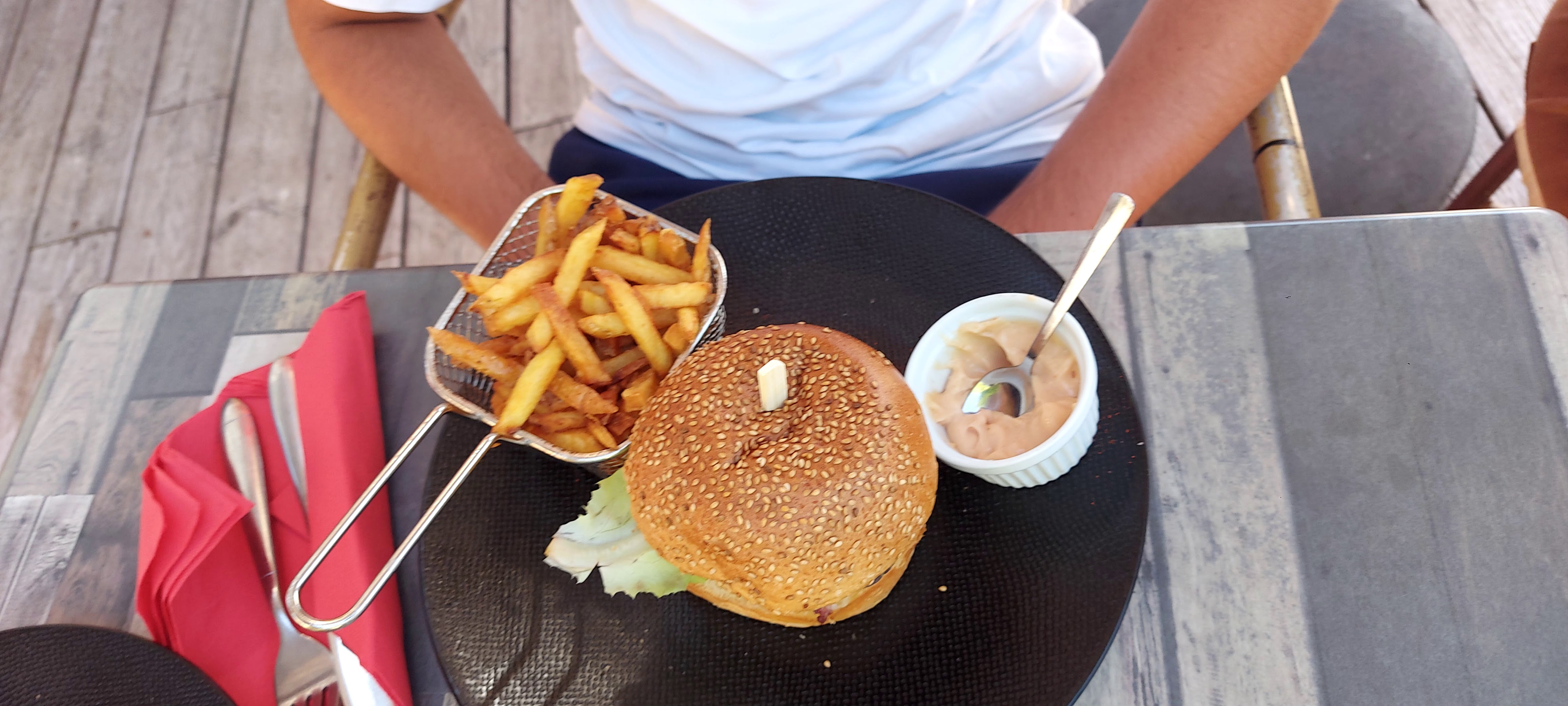 Bien ! Accueil agréable et repas correct pour 3 adultes et 2 enfants ! Burgers énormes et moules marinières copieuses. Prix sans surprise.
