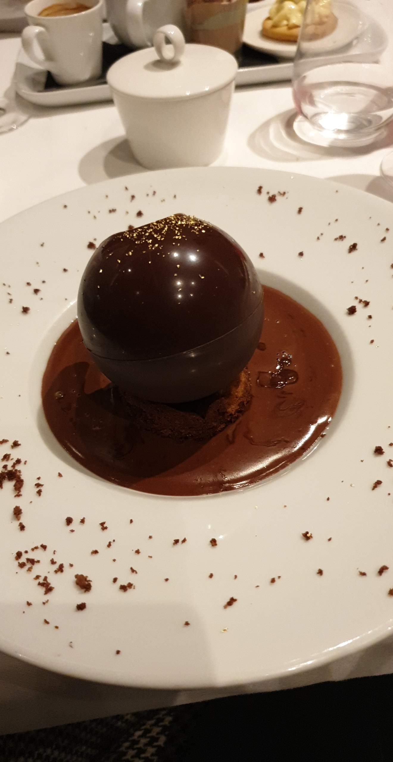 Équipe très chaleureuse, un service impeccable et irréprochable. Entrée à la hauteur bien présentée et surtout très bonne (oeuf en cocotte et champignons blancs). Concernant le plat, le tournedos que j’ai commandé à point était presque trop cuit. C’était un plat très simple accompagné de pommes frites, pas digne d’un grand restaurant. Le rouget était trempé dans l’huile (dommage). Pour le dessert, on a prit le « dessert signature » il était onctueux & délicieux, des saveurs qui explosent en bouche.