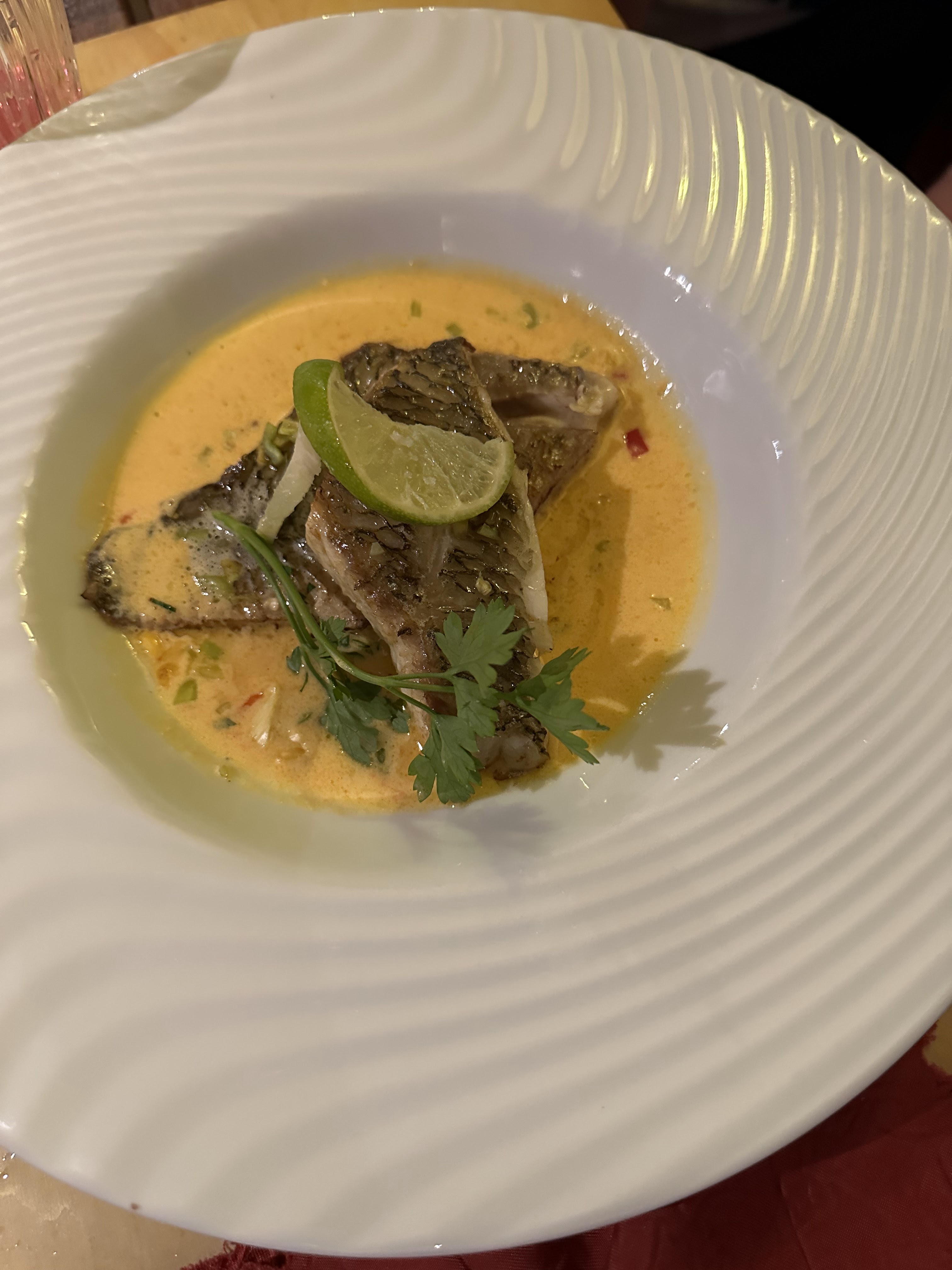 L'un des meilleurs dîners que nous ayons eu depuis longtemps. Personnel très accueillant et prévenant. Nous sommes passés par là à la recherche d'un restaurant pour dîner. Même sans réservation (nous y sommes allés assez tôt), le personnel nous a accueillis et nous avons pu choisir la table nous-mêmes. Bien sûr, après avoir jeté un coup d’œil au menu, nous savions que ce ne serait pas un dîner bon marché. Mais ça valait vraiment le coup ! À commencer par le tatar de papaye verte au thon, qui était totalement incroyable et l'un des meilleurs tatar de thon que nous ayons jamais mangé. Comme plats principaux, nous avons choisi un steak de filet, du poisson grillé et un plat de nouilles aux crevettes et au poulet. Le tout très excitant servi avec d’excellents ingrédients locaux. Nous avons également pris un dessert car tous les repas mentionnés ci-dessus étaient fascinants. Crème brûlée et nougat glacé maison avec un assortiment de noix et pistaches. Après tout, c'était une soirée spéciale dans un restaurant très confortable et intéressant. Si vous aimez le vin ou le champagne, vous ne pouvez pas vous tromper ici puisque cet endroit possède son propre réfrigérateur à vin/champagne. Cocktails et liqueurs à base de rhum nous a également époustouflé. Malheureusement, nous n'avons pas découvert cet endroit plus tôt. Nous y serions certainement allés plus souvent.