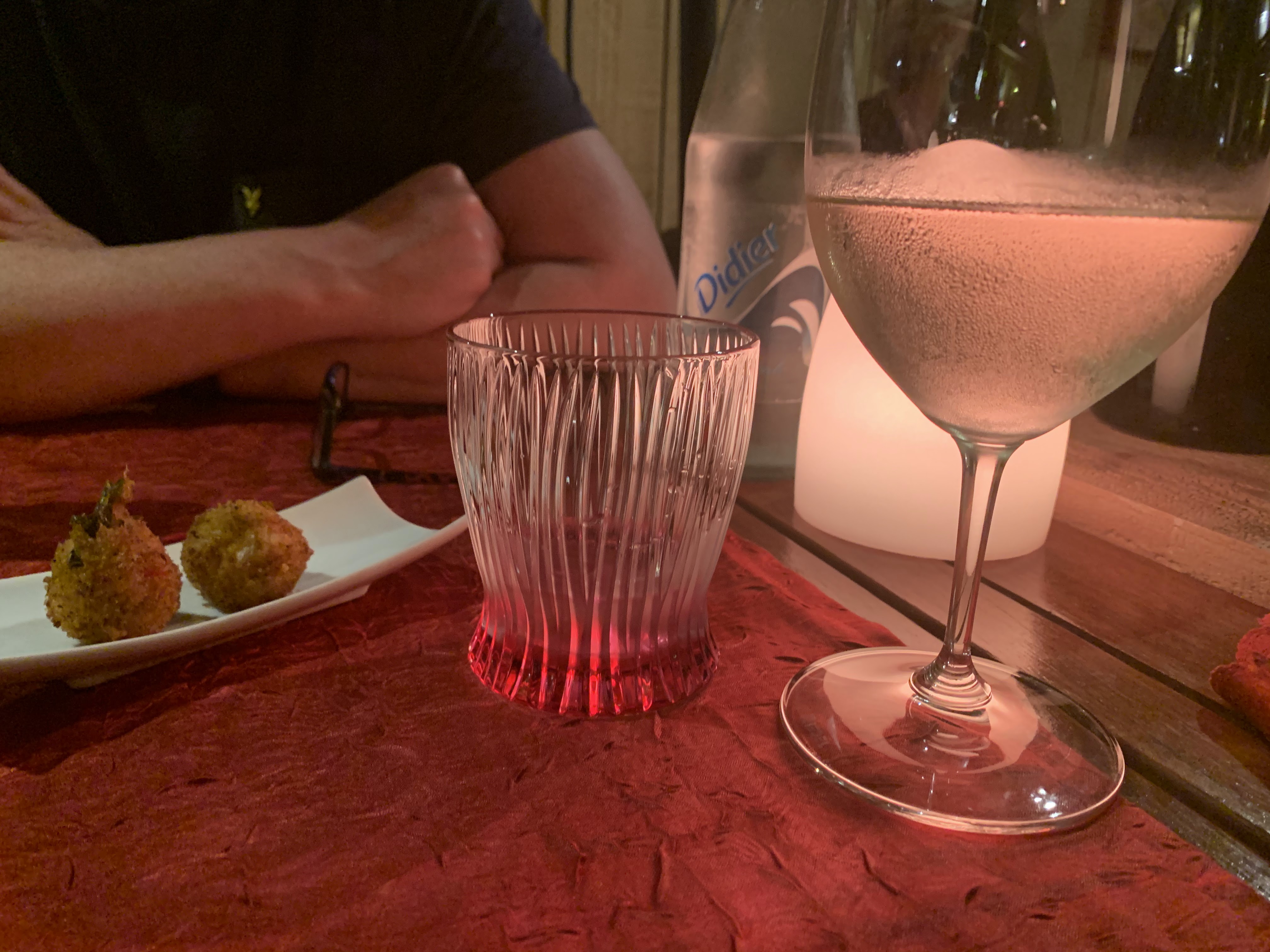 Je donne rarement un 5 étoiles aux restaurants des Antilles mais celui-ci était un restaurant fabuleux. La nourriture était si bonne. Il n'y avait rien de mal à mon expérience, absolument aucun et j'étais si heureux que nous ayons passé notre dernière nuit en Guadeloupe car cela nous a laissé un goût magnifique, littéralement parlant. L'intérieur est tellement rêveur et romantique. J'ai adoré les couleurs et la déco chic et shabby française. Bonne sélection de vins. Nourriture fraîche et savoureuse - je n'aurais rien pu demander de plus. Le personnel était sympathique et chaleureux. C'est un restaurant agréable et chaleureux et vous devrez réserver pour y séjourner car il semble être très populaire auprès des locaux et des touristes. Les gobelets à vin m'ont donné des sensations ! Ils étaient très gros et j’adorais en boire. Ça vaut vraiment le détour