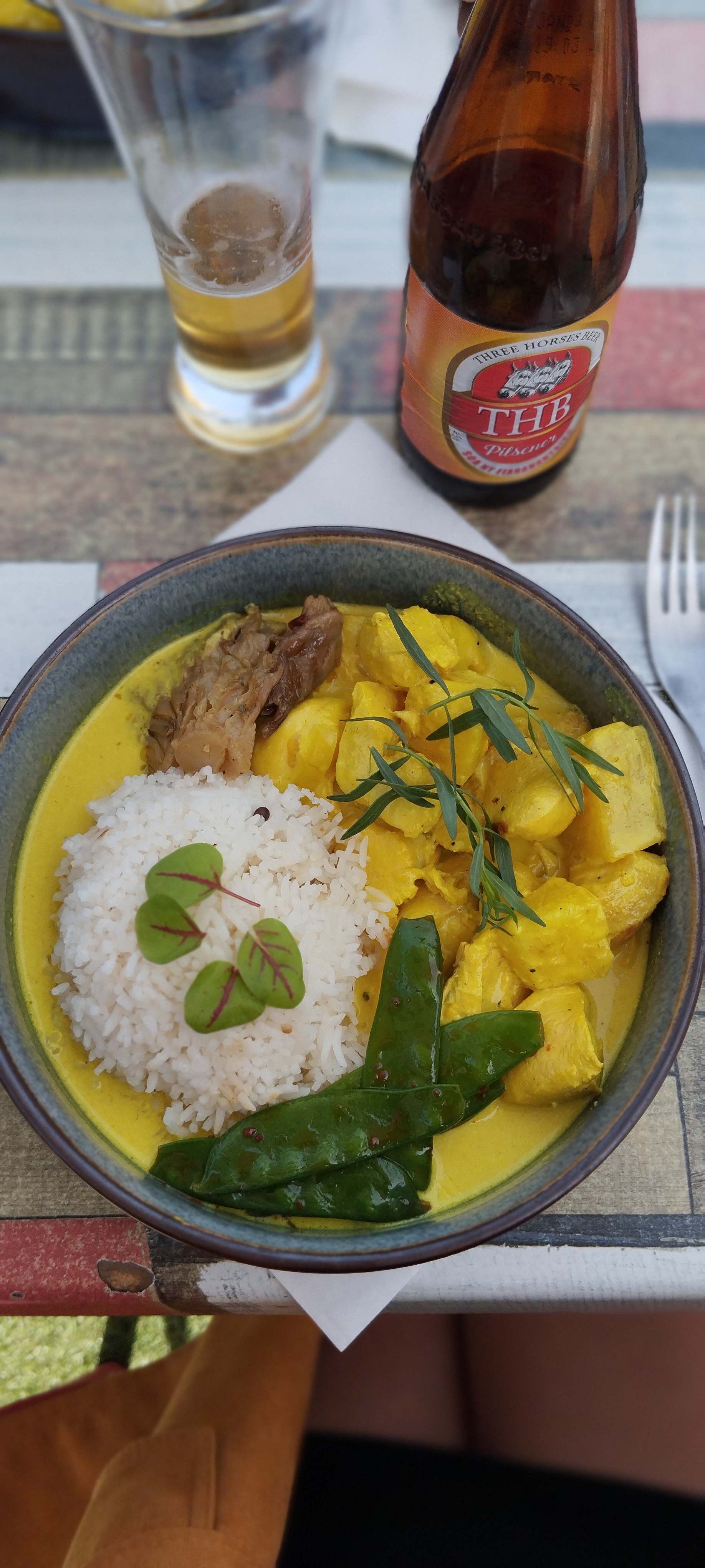 Nous avons pris à emporter du bœuf massale et du poulet ananas curry accompagnés de purée de patates douces à la vanille et de riz, tout était excellent et les portions généreuses, très bon accueil, nous reviendrons !