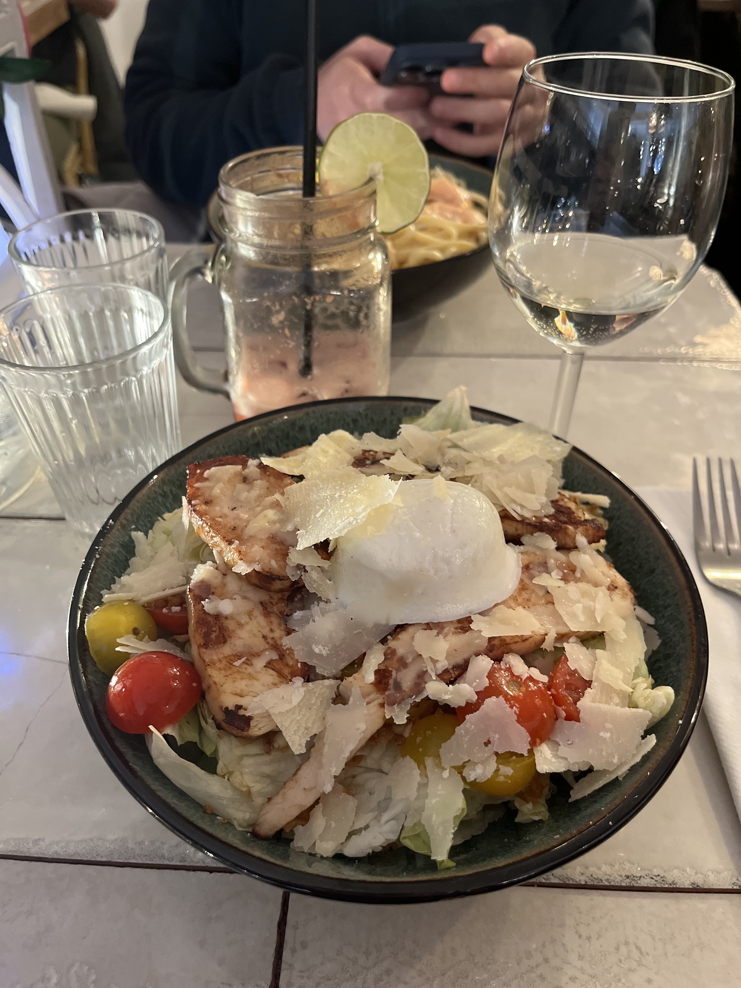 ❝ Pâtes et salades saines ainsi que cocktails dans un restaurant pittoresque pourvu d'une terrasse. ❞