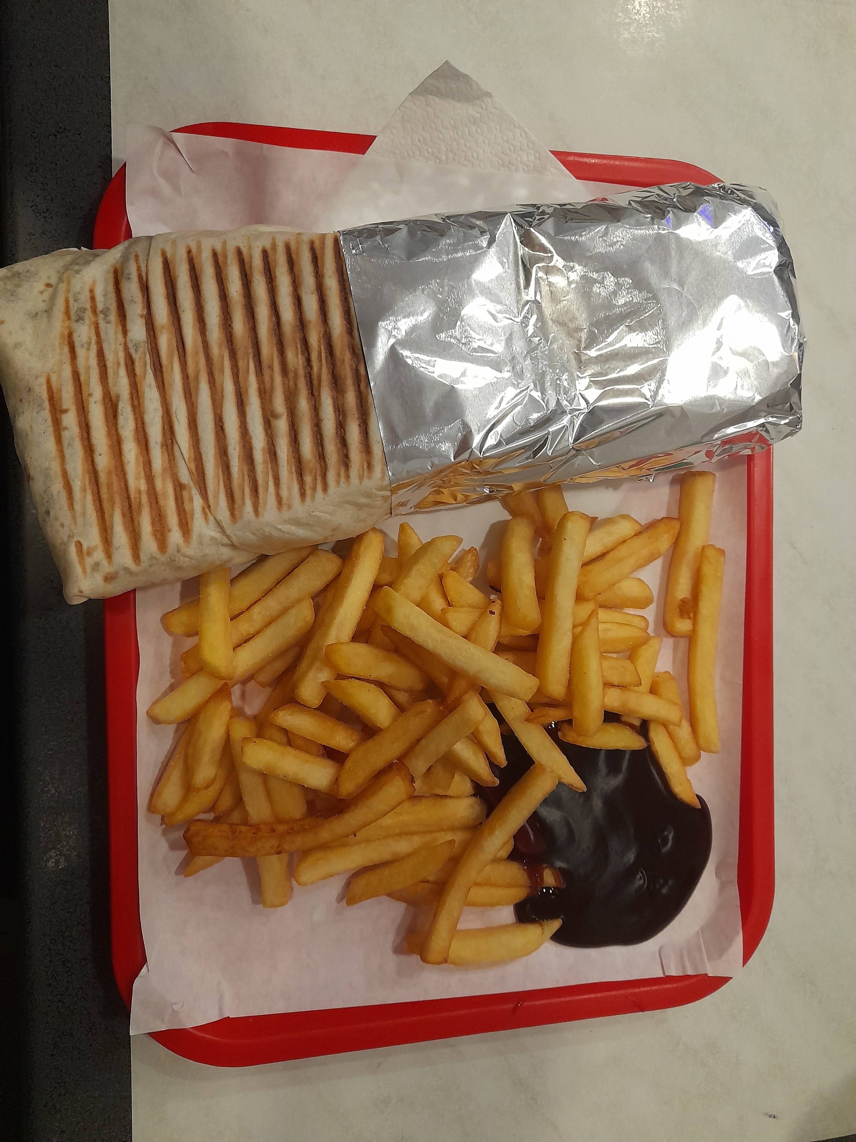 Pain délicieux, viandes ne pue les épices chimiques, légume frais, frites bonnes et pas baigner ds huiles, le patron est super sympa, environnement propre er vitrine propre.TOP