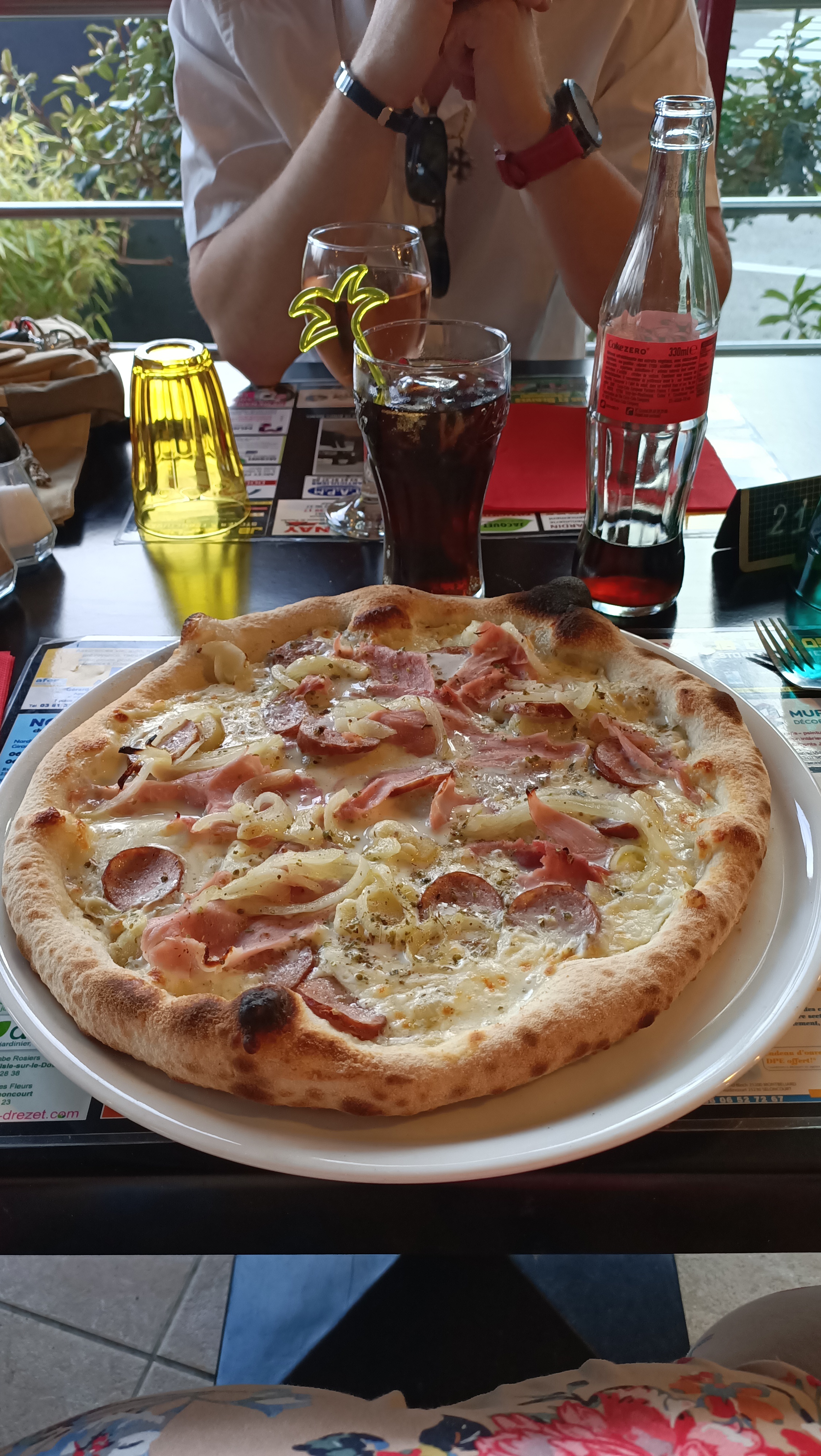 J’ai pris une Pizza au saumon excellente, la cuisson, le saumon très bon! Mon compagnon une Pizza à l’oriental, rien à dire dessus, excellente. Juste, un petit bémol, merguez coupées trop gros.