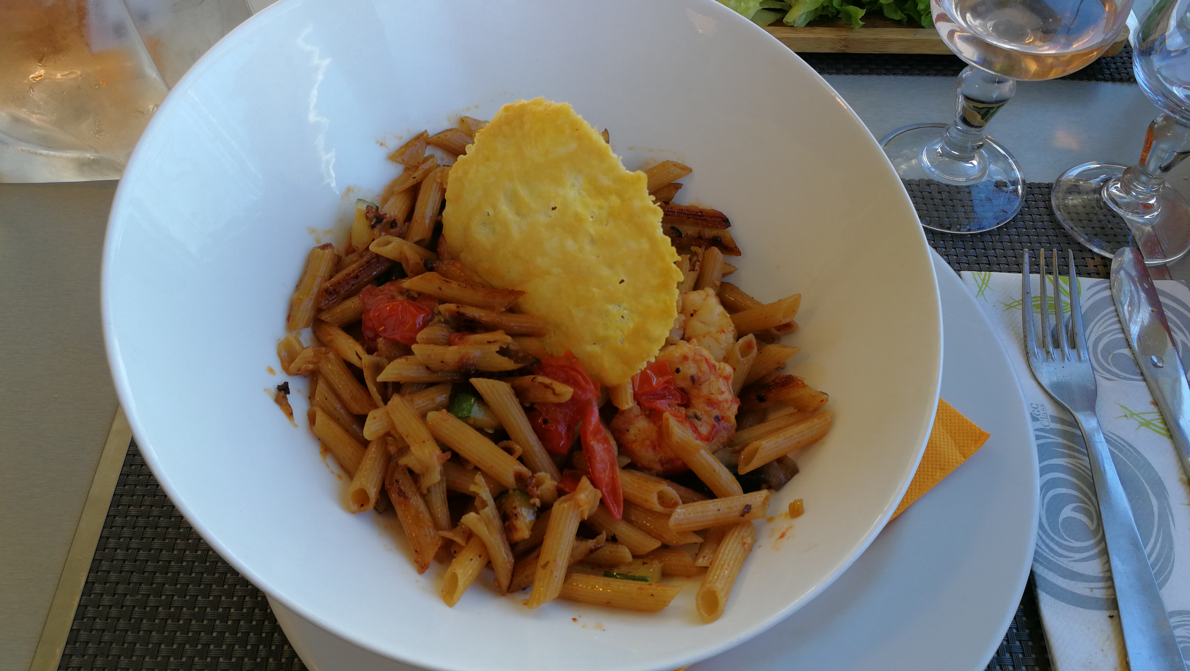 Qualité pas au rendez-vous pour le prix (spaghettis pesto saumon, peu de saumon, assiette du pêcheur, produits surgelés ou pas très bien cuisinés). Une mention pour le pain sec, vieux de midi ou de la veille ?