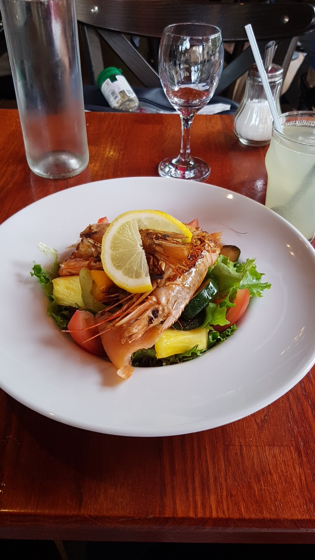 Étonnamment agréable et délicieux. Nous sommes arrivés fatigués et affamés. Le personnel était très sympathique, efficace et heureux. J'avais des pâtes, l'autre plat était du saumon. Les deux étaient excellents. Si vous êtes dans le coin, je vous recommande de vous arrêter ici.