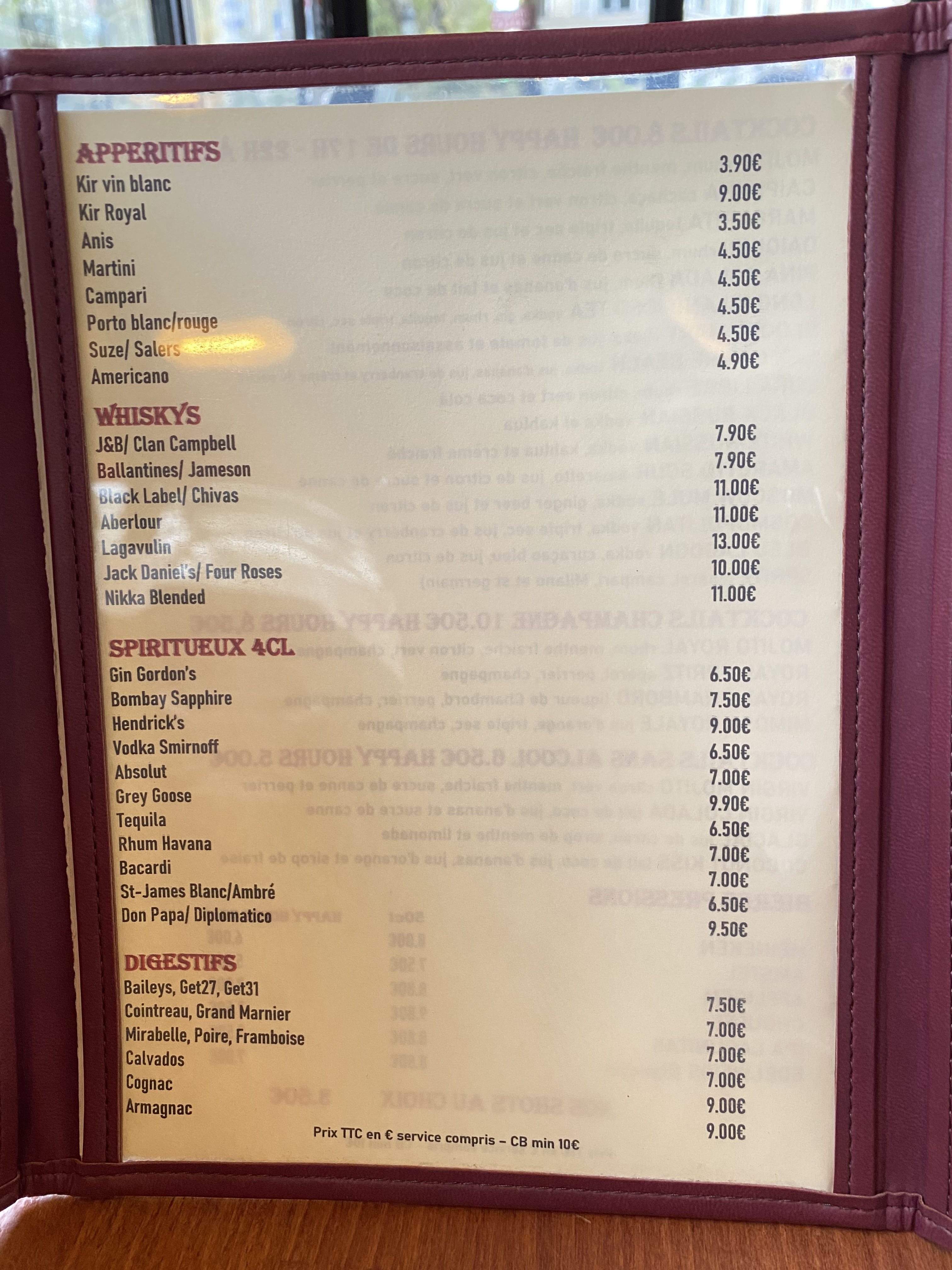 4,50€ un jus de fruit. 3,50€ pour un expresso alors qu'il était écrit 2,50€ sur la carte