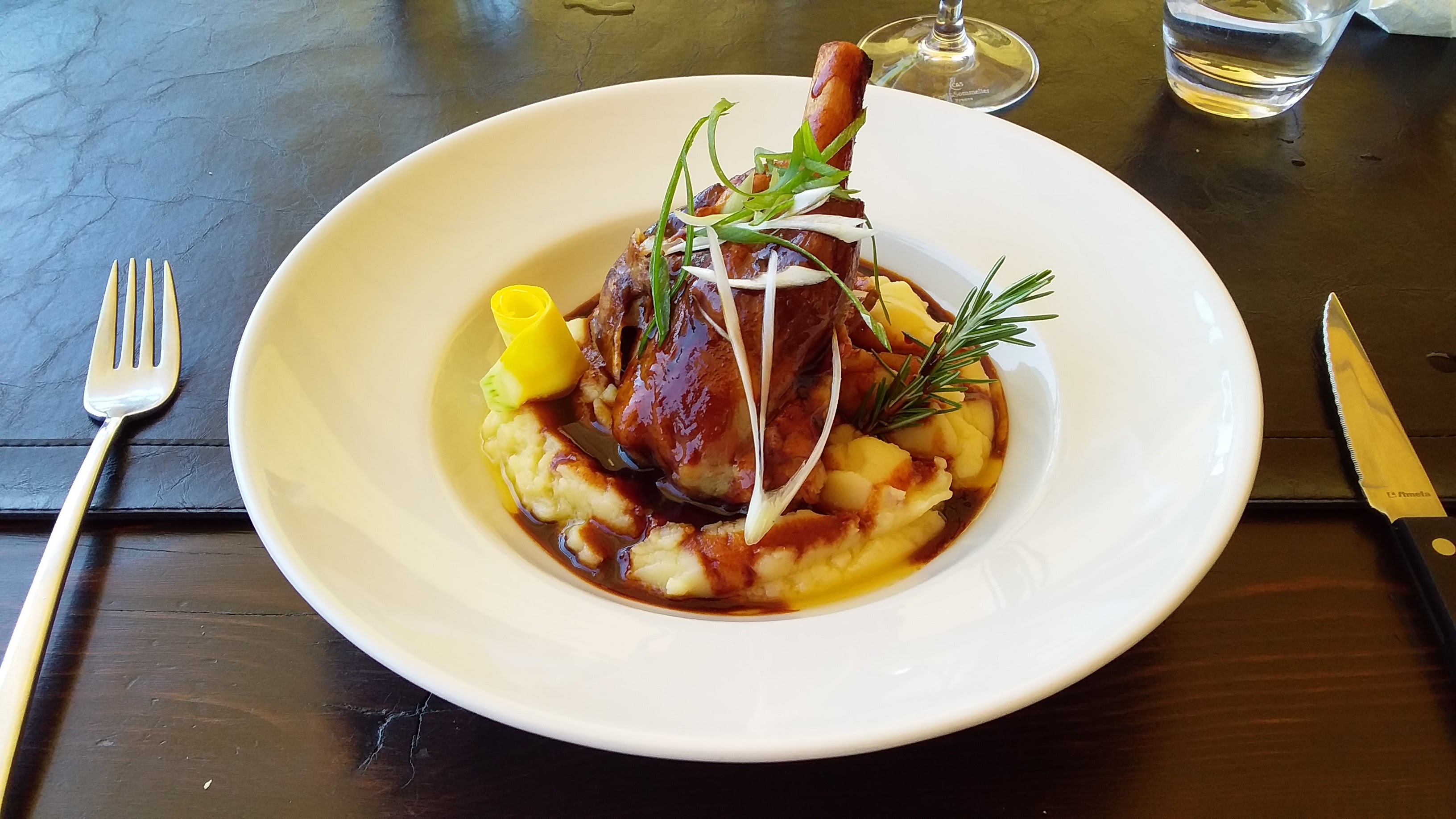 Pas une fausse note. Le cadre est beau intérieur comme extérieur. Le service impeccable, le vin blanc local : un chardonnay très correct. Niveau cuisine c'était très bon. Le filet de bœuf truffé avec son gratin de pommes de terre : un régal 👌