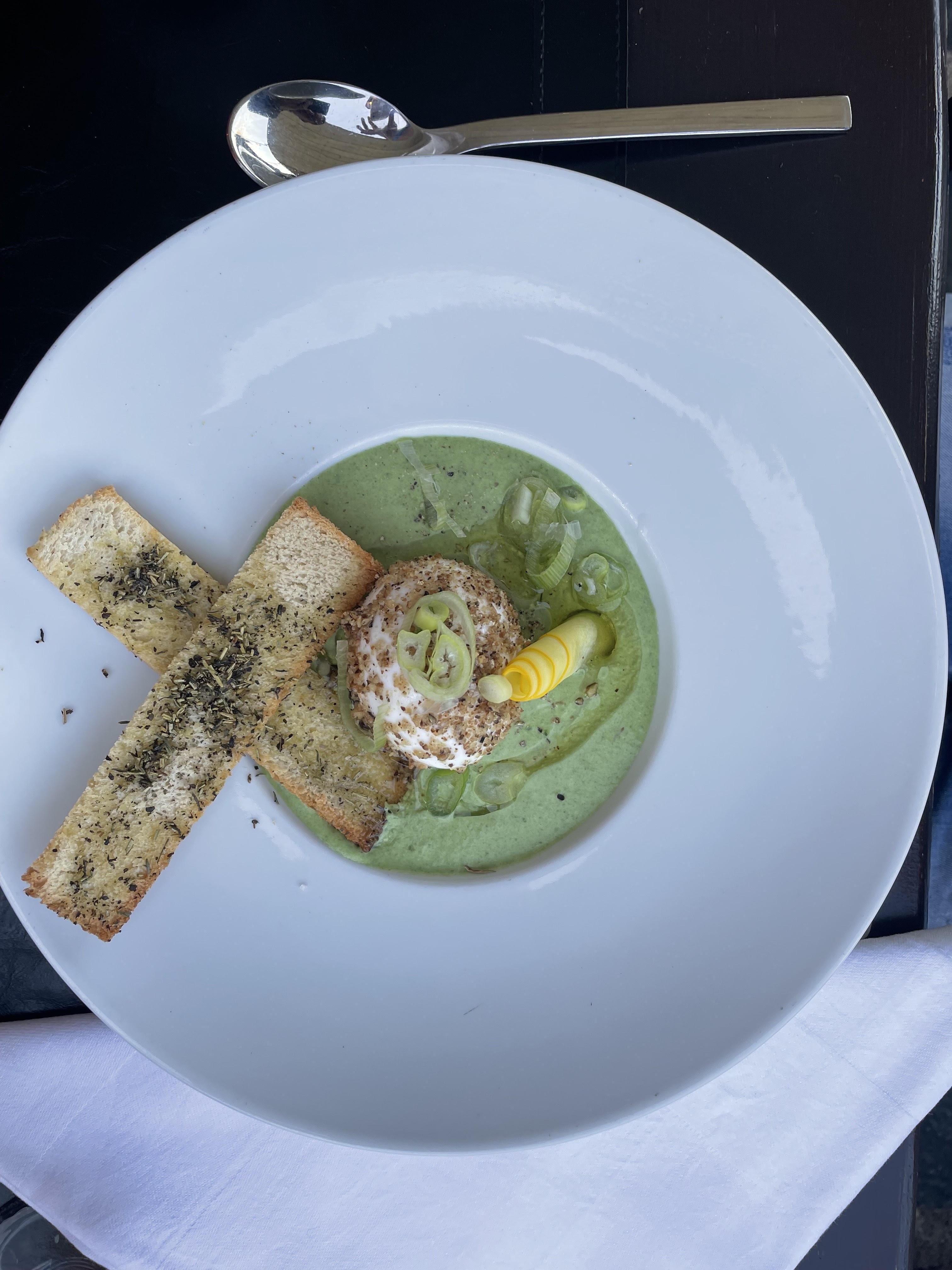 Très joli cadre avec une belle table devant la cheminée . Un choix de plat suffisant avec des belles suggestions. Le grand serveur barbu était très agréable et professionnel. Les Noix St Jacques excellence . Je recommande fortement .