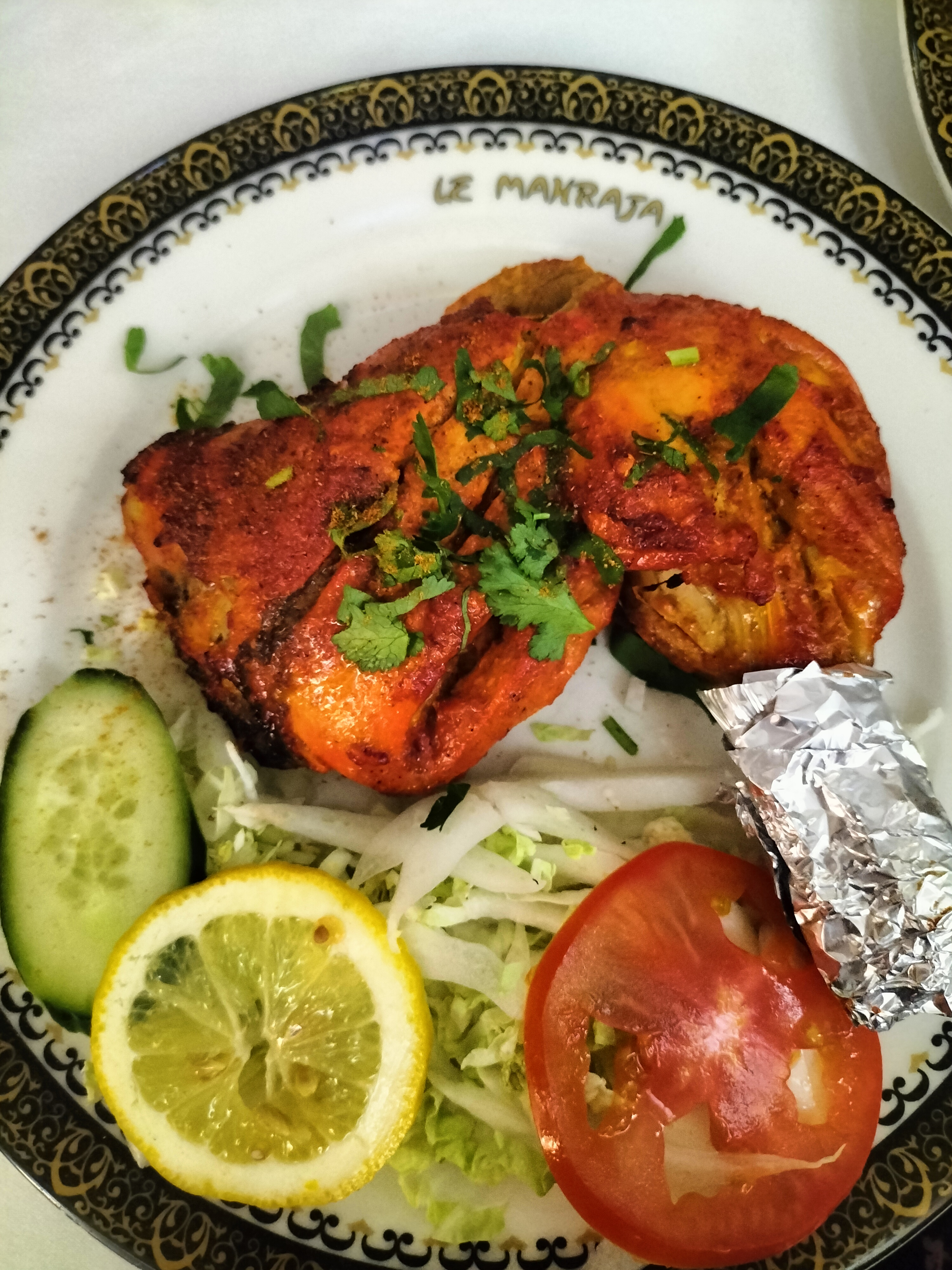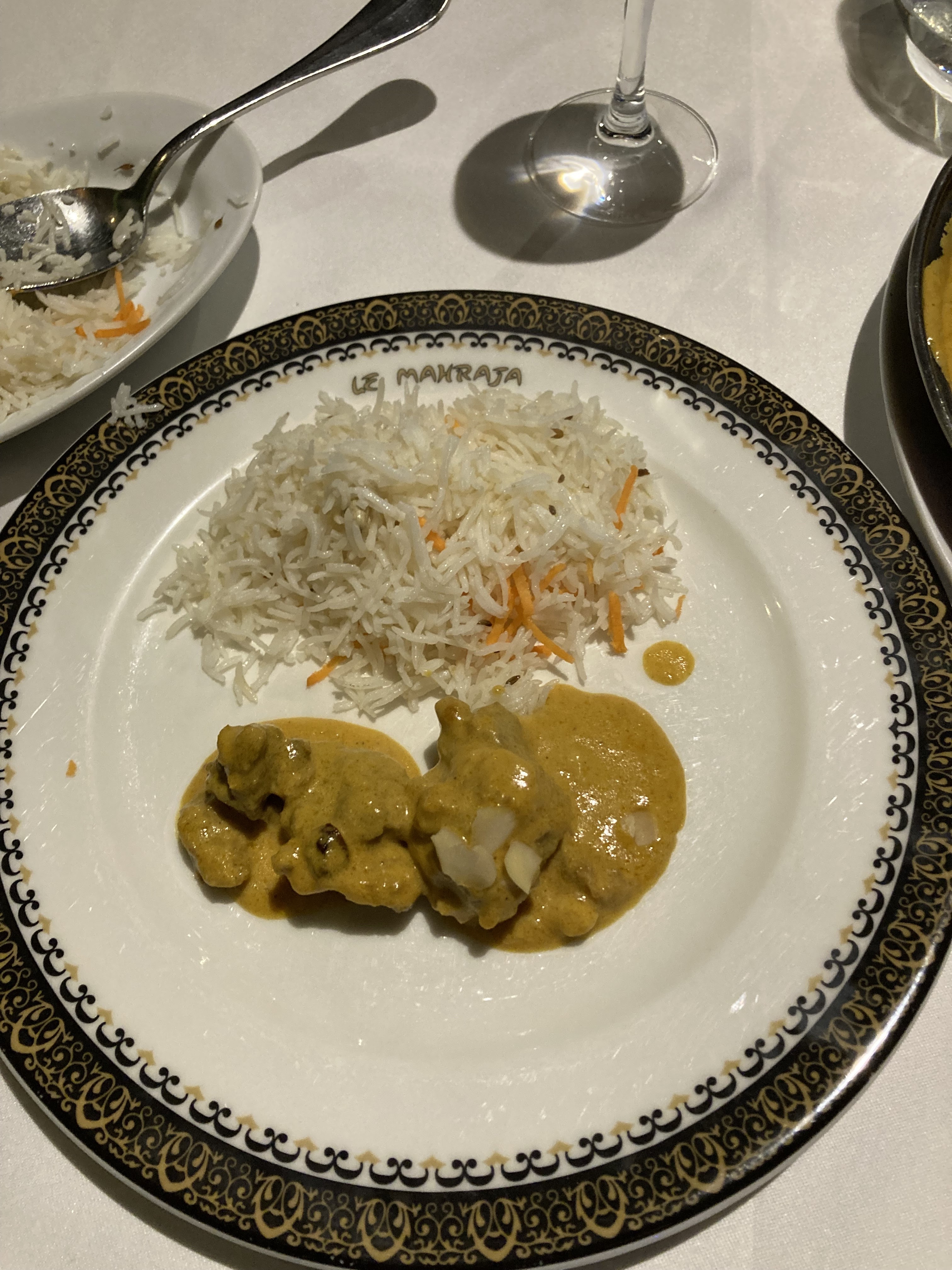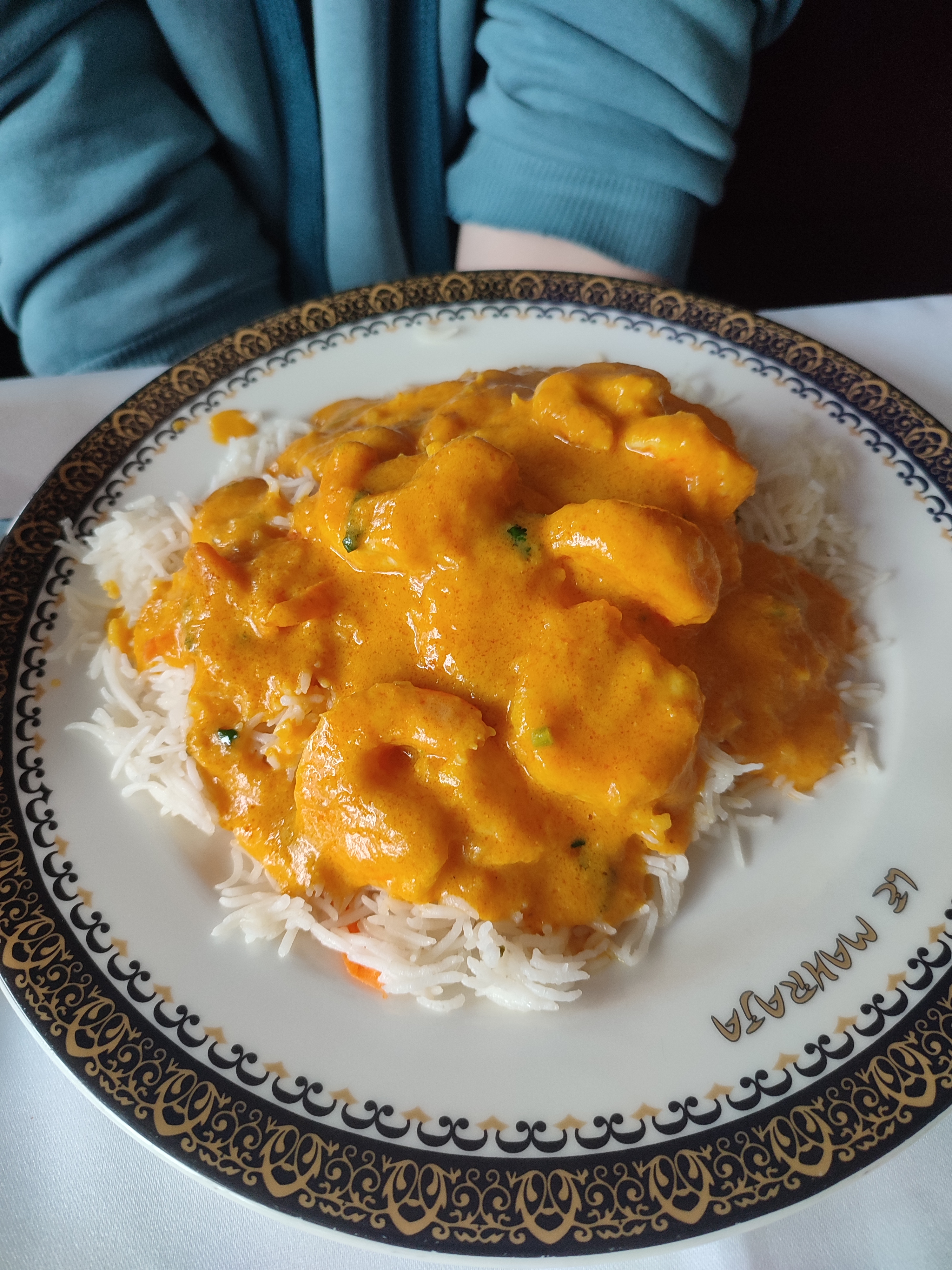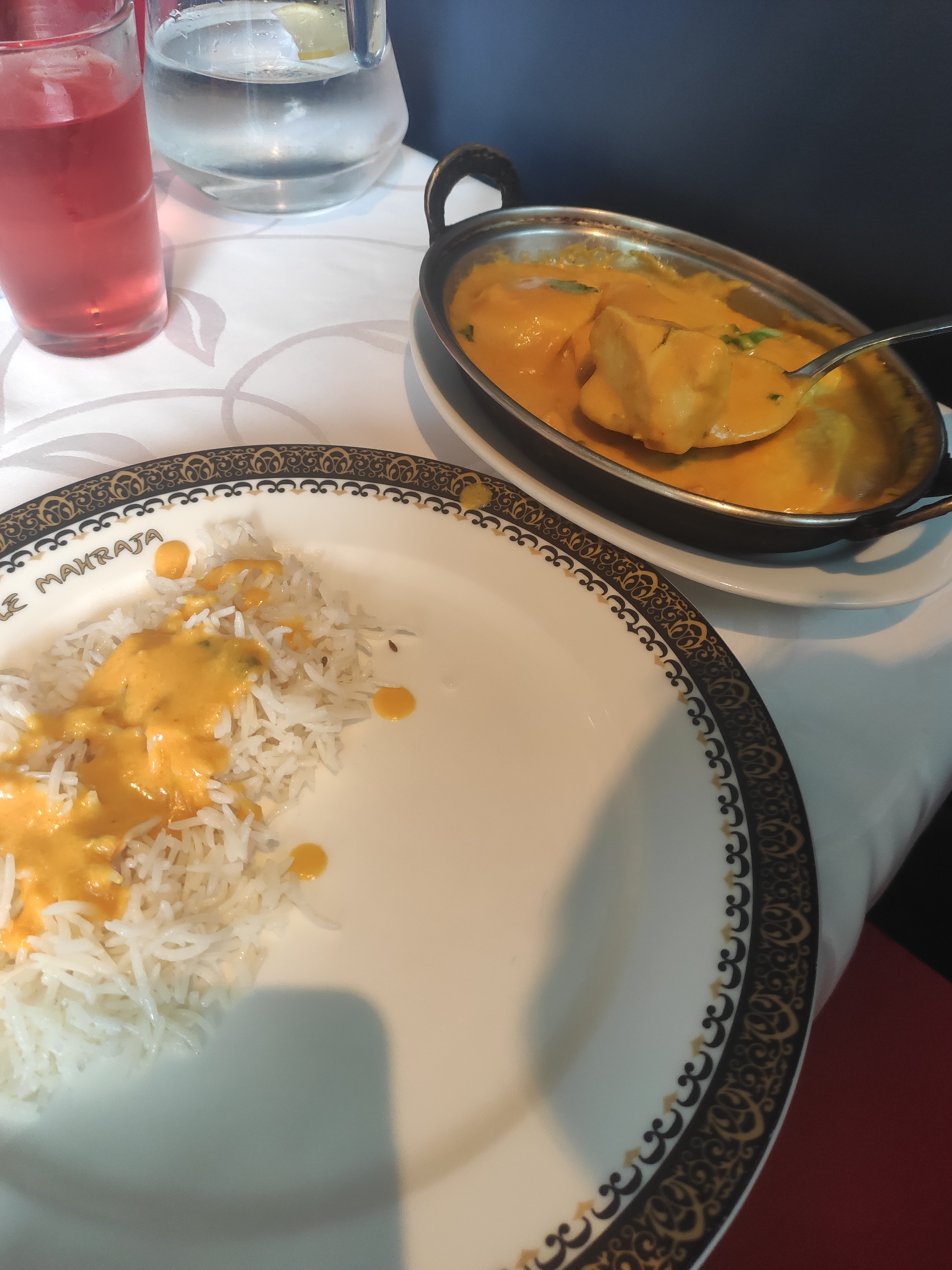J'étais déjà venu manger au Mahraja il y a quelques année. J'en avais gardé un bon souvenir. Mais samedi dernier, j'ai été déçue : Nous n'avions pas réservé. Le serveur nous propose de nous installer sur une table réservée pour 20h30. Etant 19h, nous jugeons que nous aurons le temps de manger. Nous ne prenons pas d'apéritif. Mon copain choisi 1 entrée et 1 plat à la carte. De mon côté, je choisis le menu à 22,50 euros. Mon copain reçois son entrée avant moi. Il l'a quasiment finie lorsque je m'inquiète de ne pas avoir encore la mienne. Elle avait été servie à une autre table. Puis le serveur se trompe de plat pour mon copain. Pour finir, il est 20h30 donc la serveuse nous rappelle que la table est réservée. Elle me propose d'emporter mon dessert. J'accepte. Ce dernier est un petit gâteau orange sans accompagnement. J'imagine que si l'on me l'avais servi à table il aurait été bien présenté avec une sauce par exemple. Ce dessert est à 6,90euros sur la carte mais prévu dans le menu en ce qui me concerne. L'essentiel est quand même là : décor magnifique, équipe sympa et bons plats.