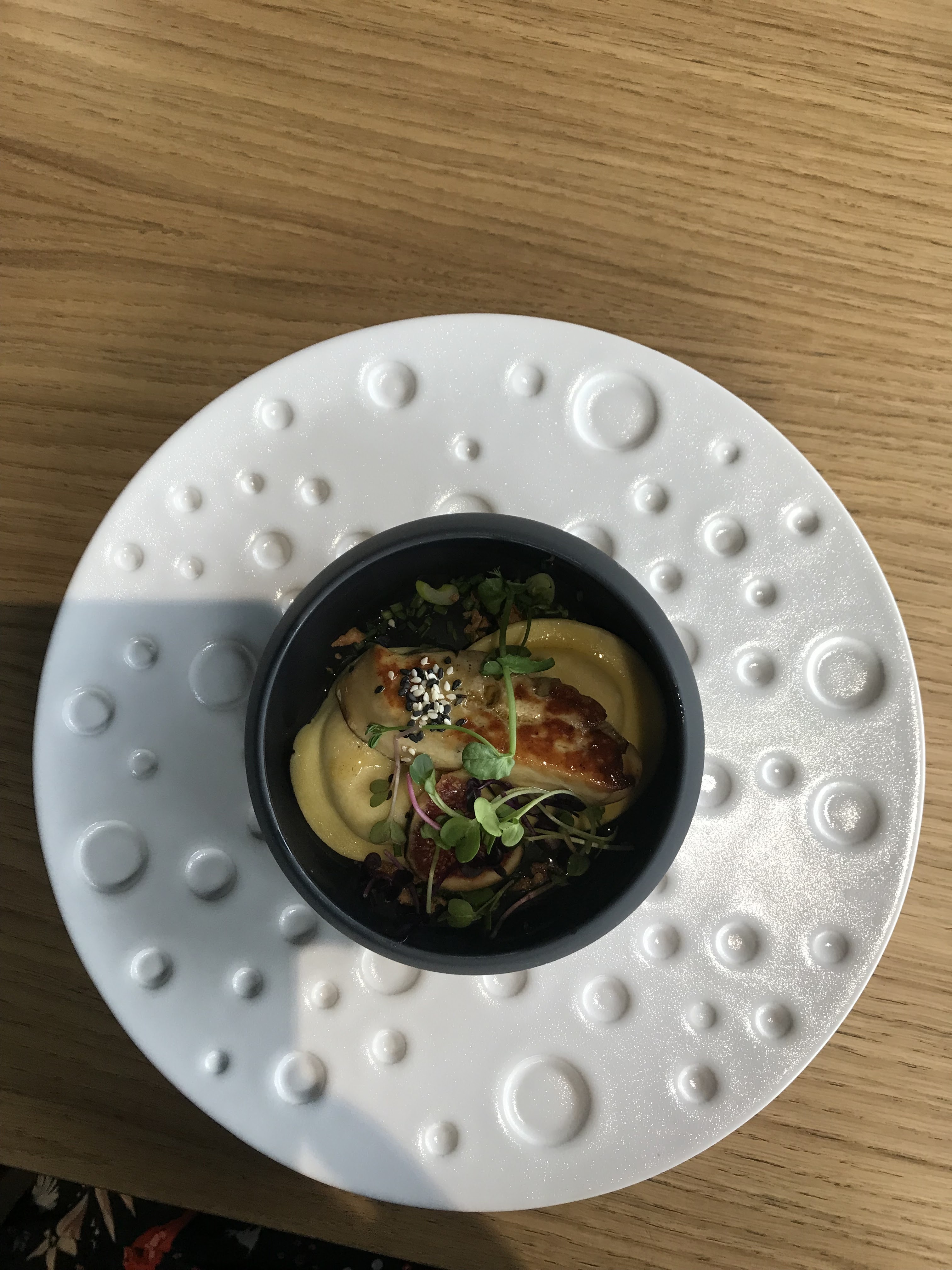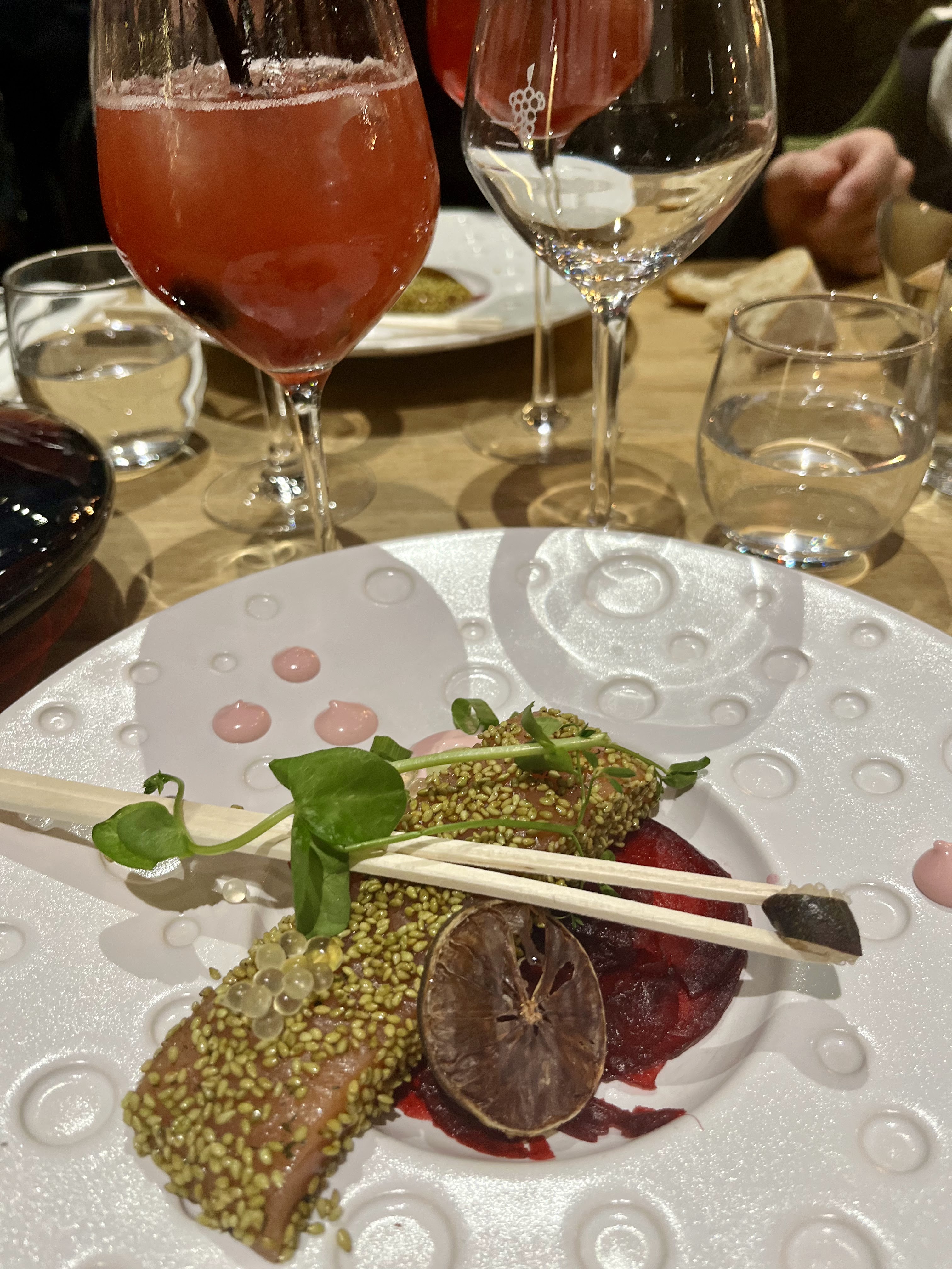 Premier dîner dans ce restaurant (02/11/23) et une belle découverte. L'atmosphère est très agréable et en total accord avec les mets et boissons proposés ainsi que l'environnement extérieur. Le service était parfait ! Le serveur qui s'est occupé de notre table est passionné par son métier et nous avons pu avoir de belles discussions autour de la gastronomie. La cuisine était gourmande et raffinée et l'accord avec le vin était vraiment intéressant. Mentions spéciales : Pour le patissier et sa tarte au fruit rouge destructurée. Le cocktail création Blackberry Tonic Et bien sûr au serveur (dont j'ai oublié le prénom...) Une chose est sûre, nous reviendrons avec joie.