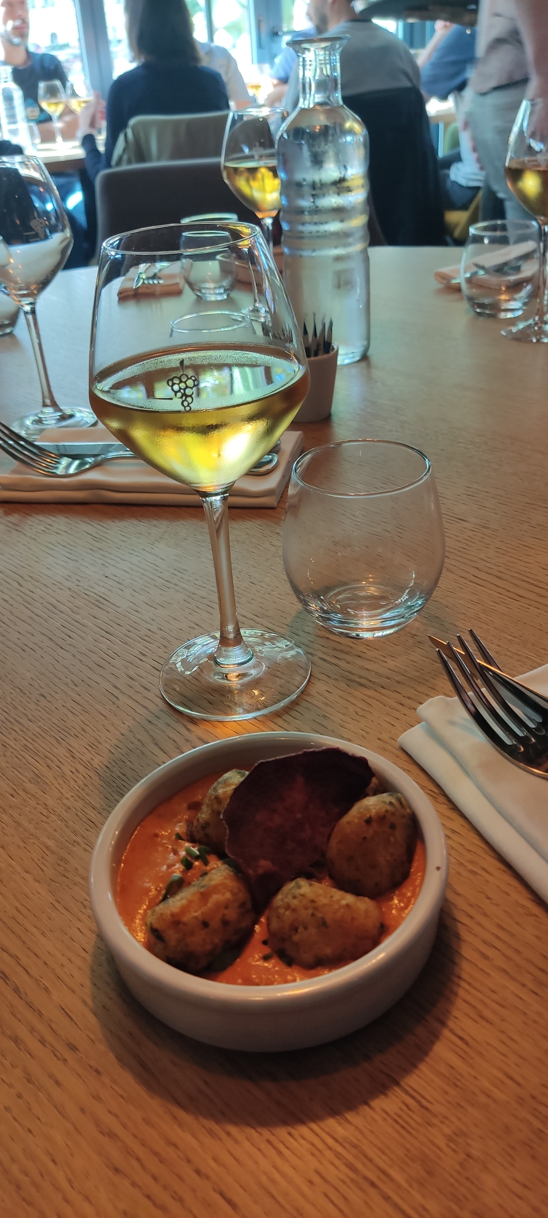 Un restaurant très bien placé dans le centre. Le service a été efficace et le serveur super ! Les plats sont très bien présenté et délicieux, avec une carte bien garni (poissons, viandes, options végétales…). Ils disposent d’une carte de vins merveilleuse, avec des vins locaux et un sommelier prêt à vous conseiller. Lors de notre repas, un petit concert avait lieu c’était très agréable. Nous avons mangé à 6, pour environ 50€ - 60€ chacun (entrée - plat - dessert et planches apéros).